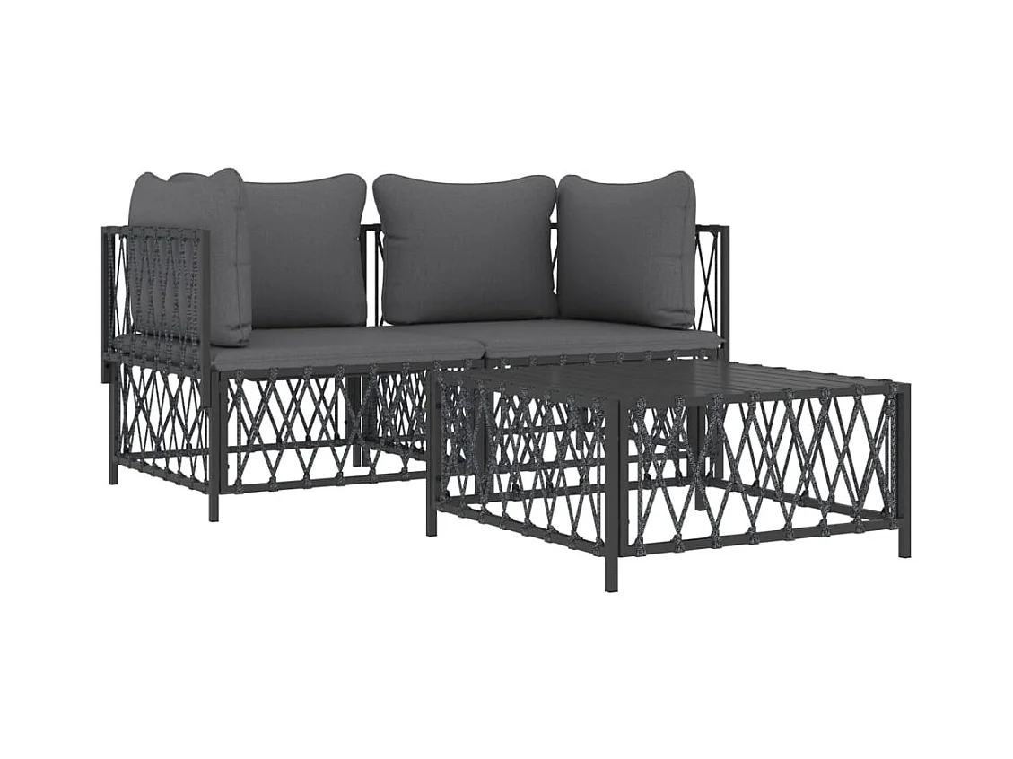 3-delige Loungeset met kussens staal antracietkleurig NL33809