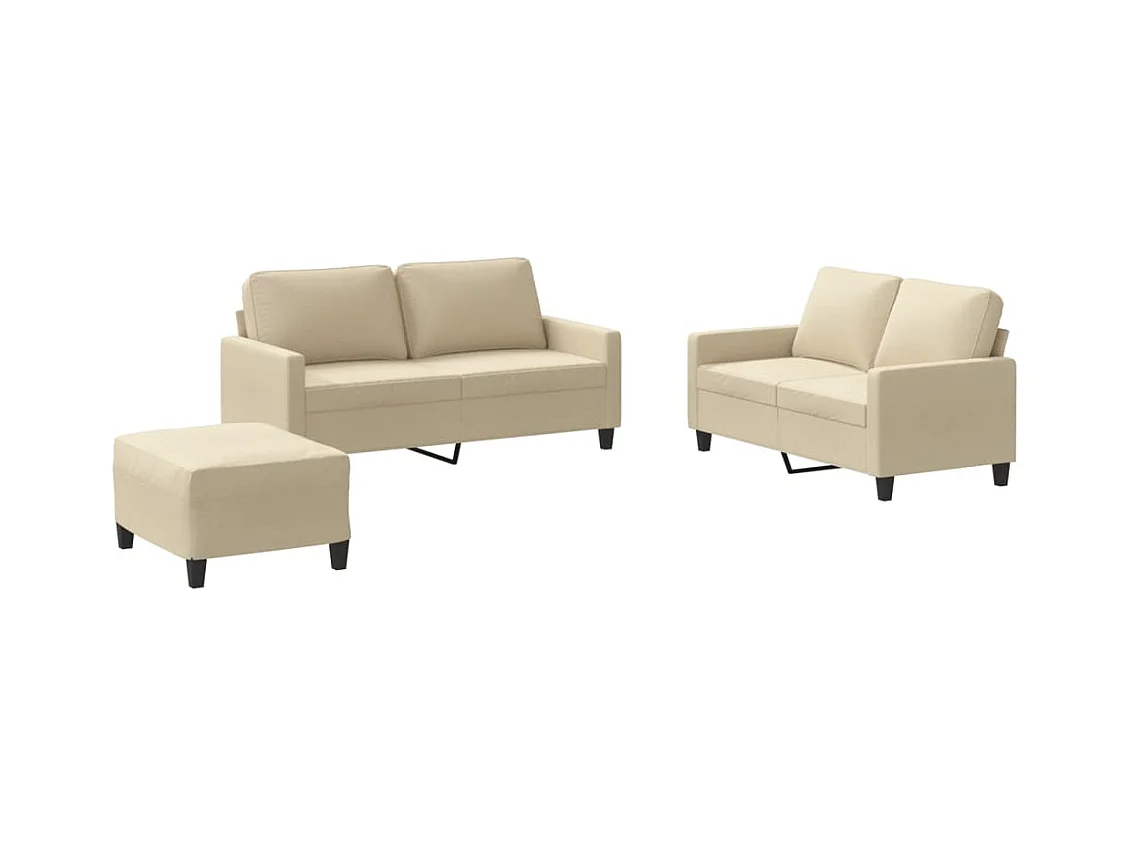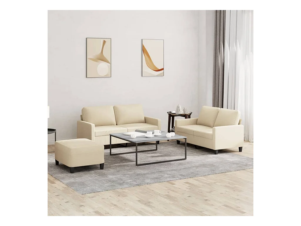 3-delige Loungeset met kussens stof crèmekleurig