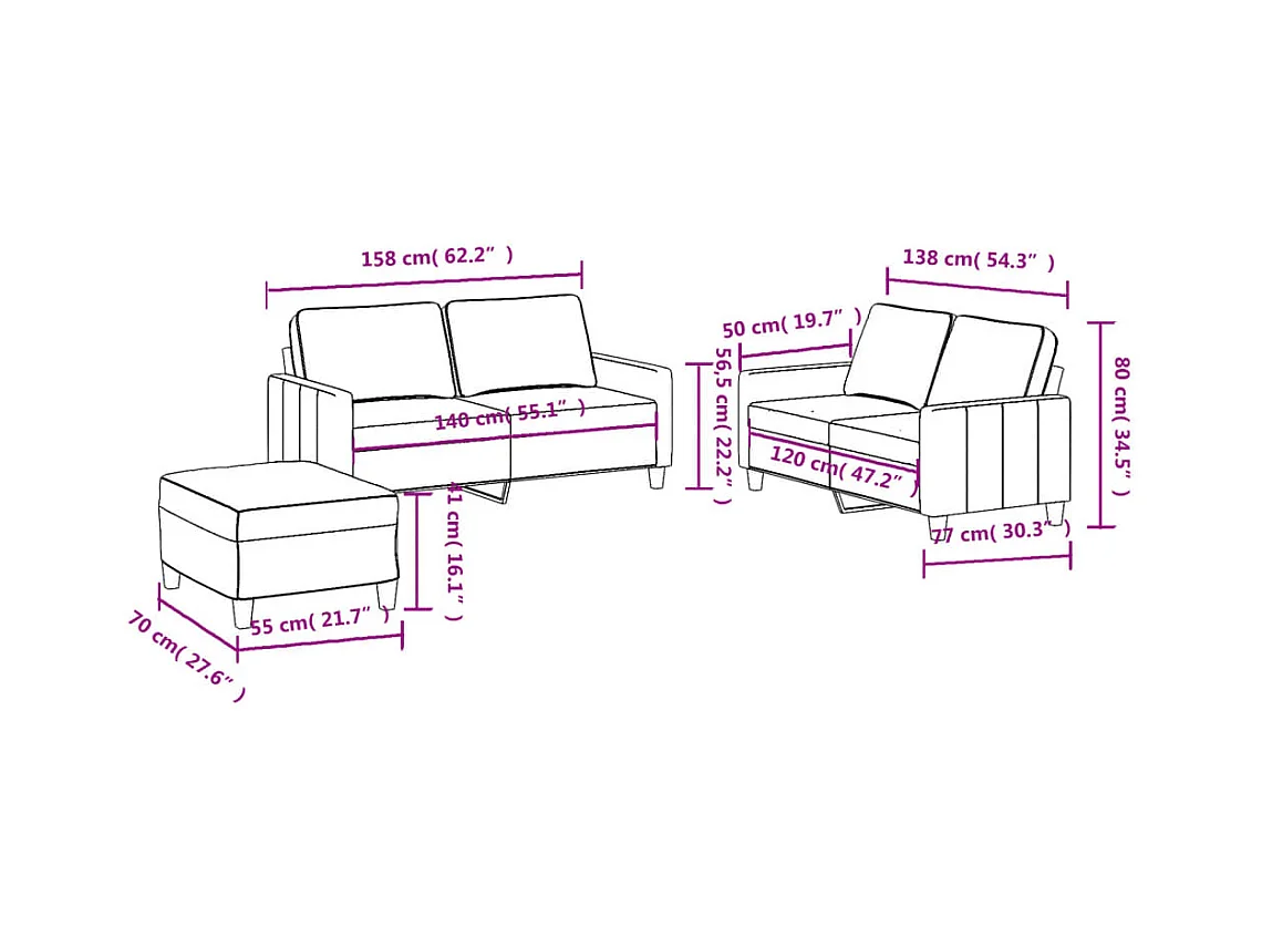 Set: 2- en 3-zitsbank - Stof