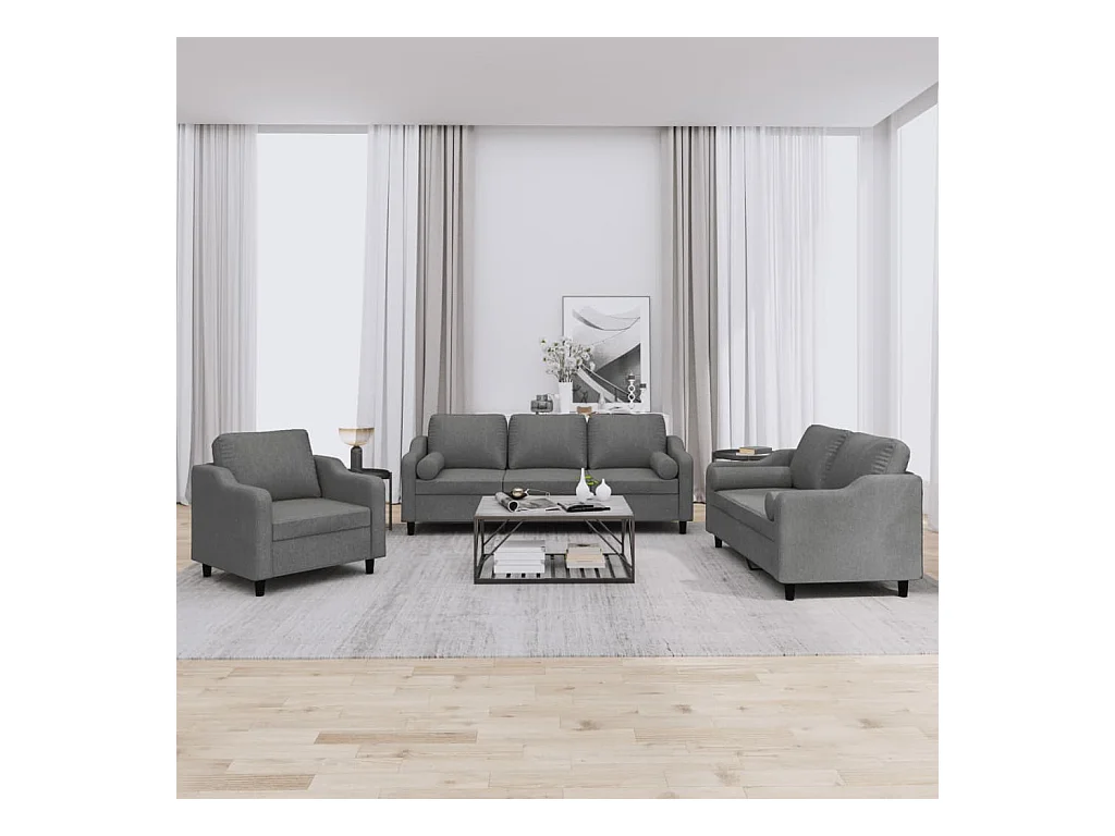 3-delige Loungeset met kussens microvezelstof lichtgrijs