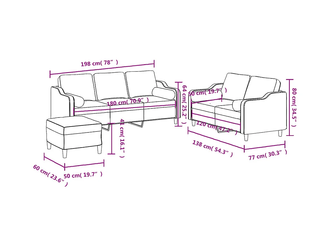 Set: driezits + tweezitsbank - Wit / Ivoor