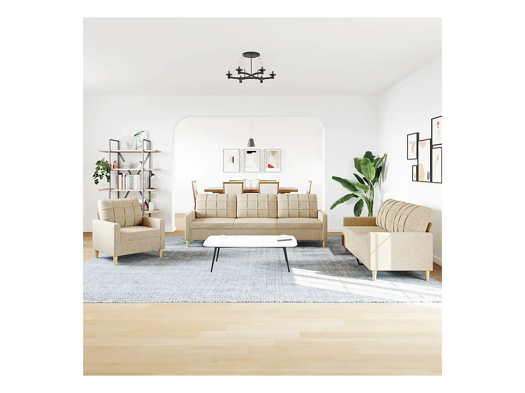 3-delige Loungeset met sierkussens stof crèmekleurig