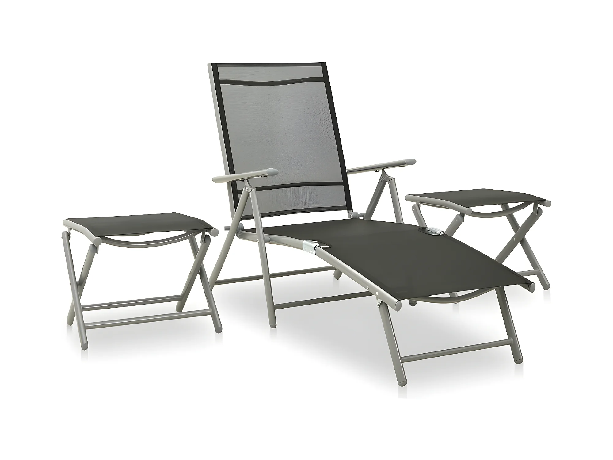 Ligbedden 2 st met tafel aluminium zwart NL712034