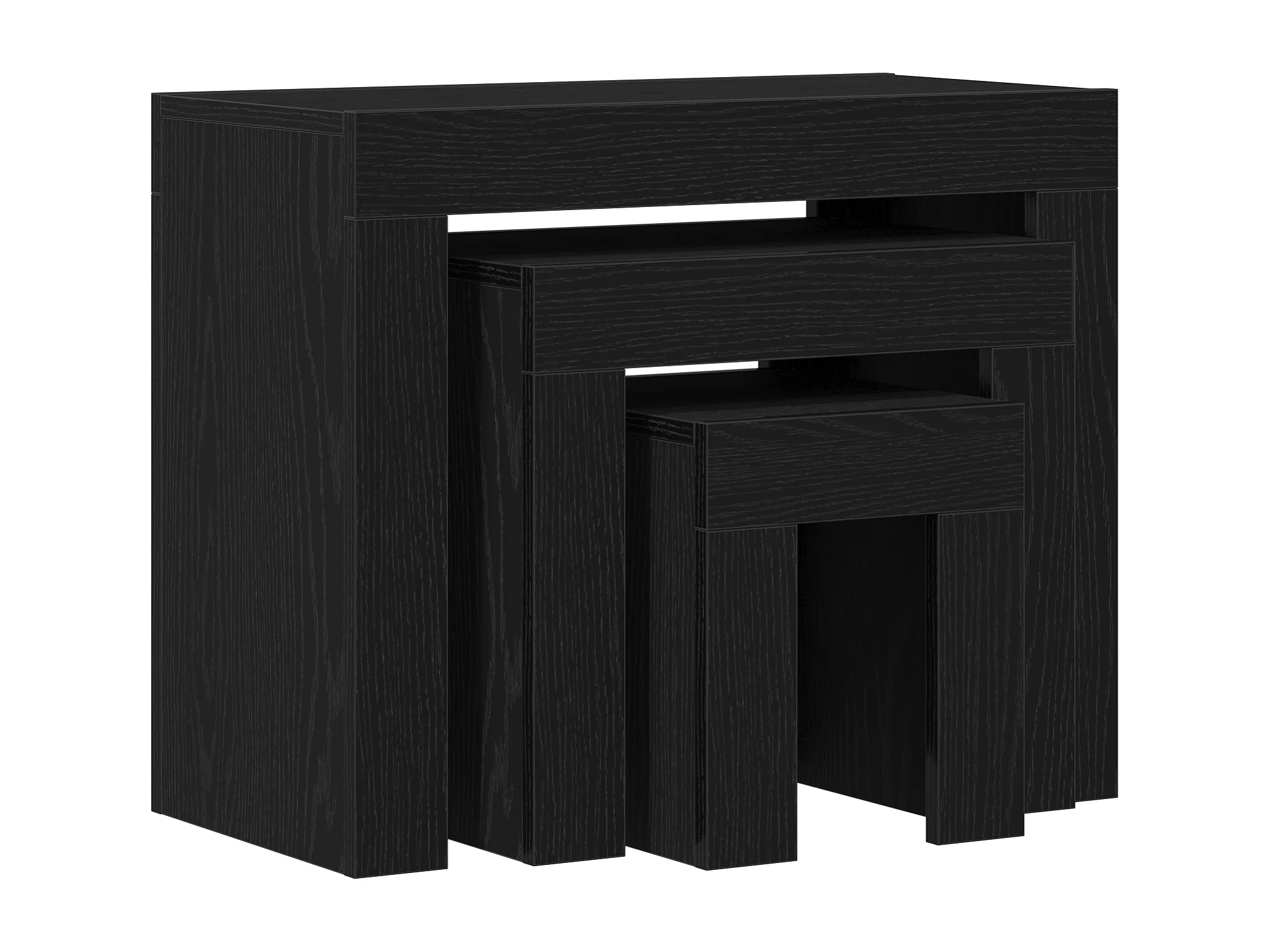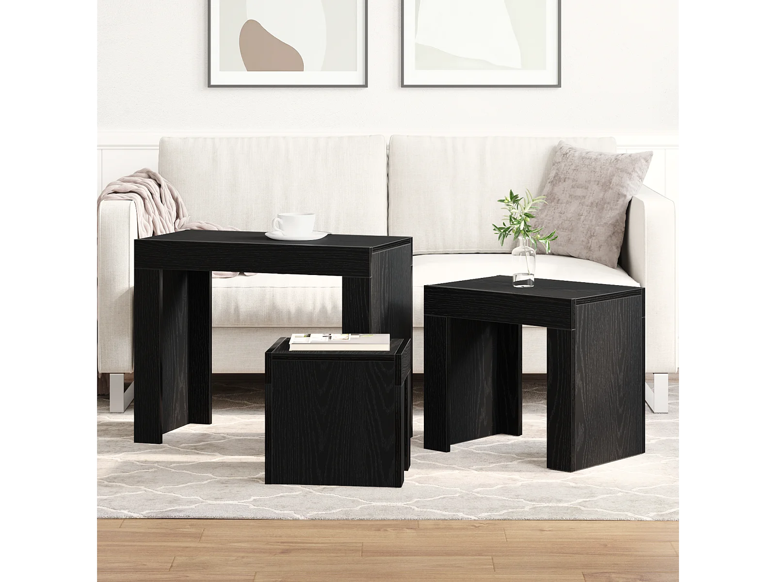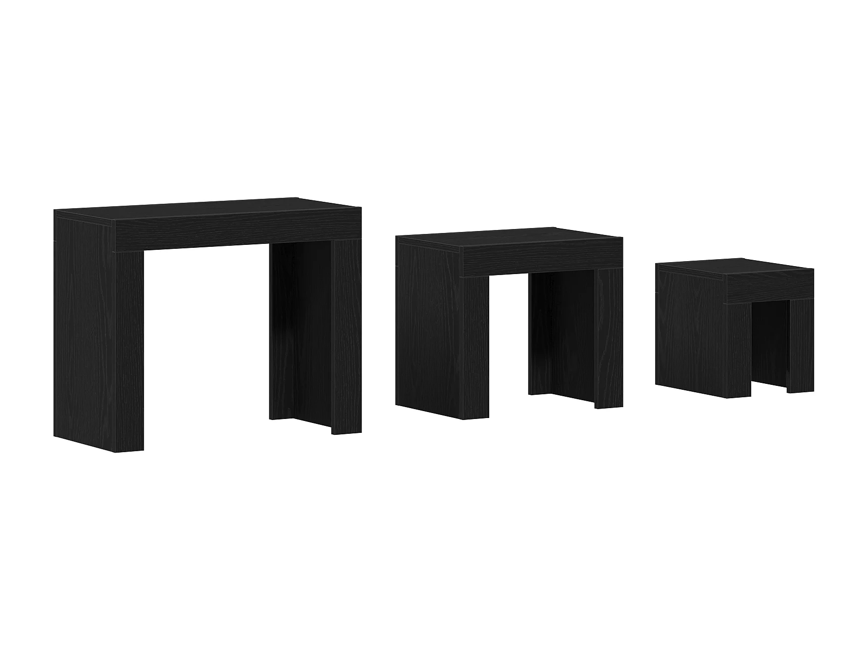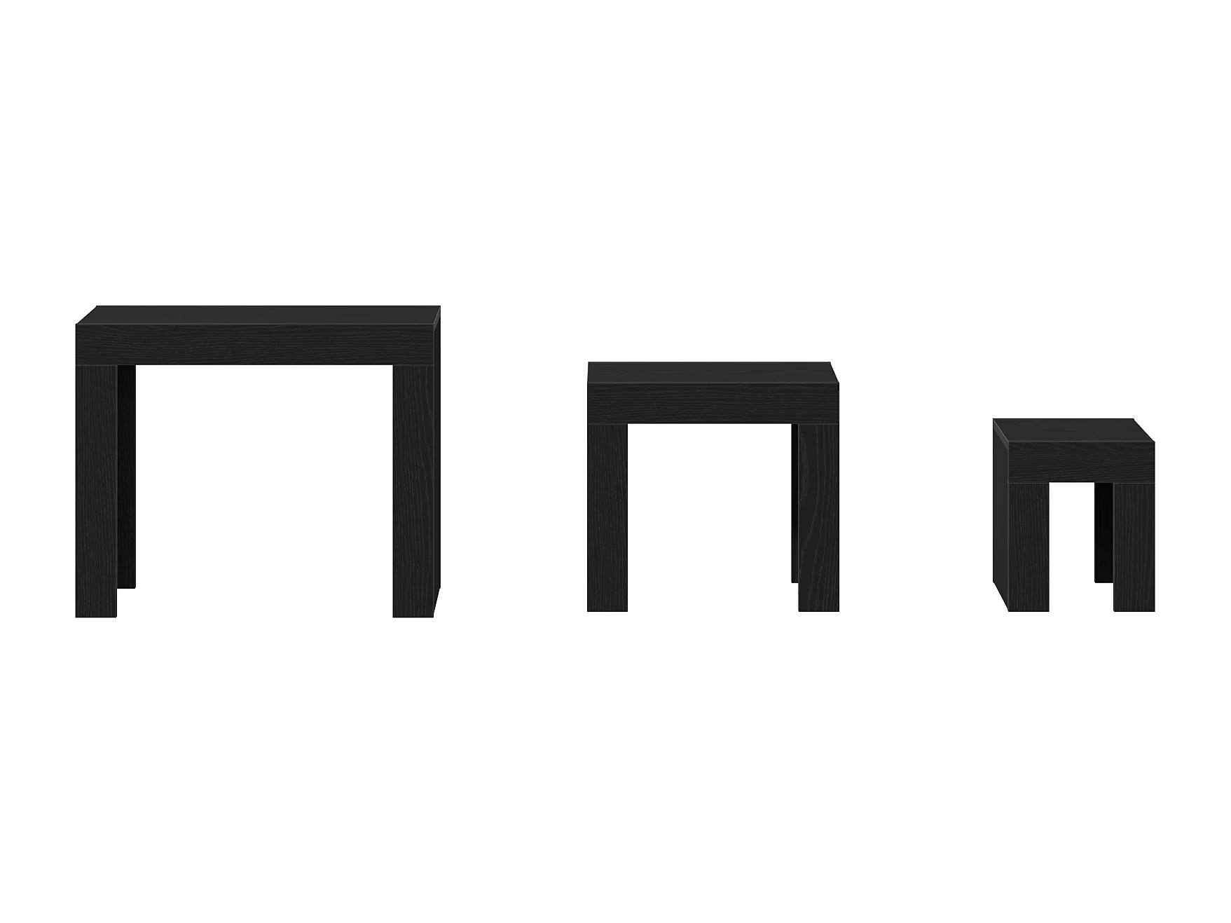 3-delige salontafels in zwart bewerkt hout