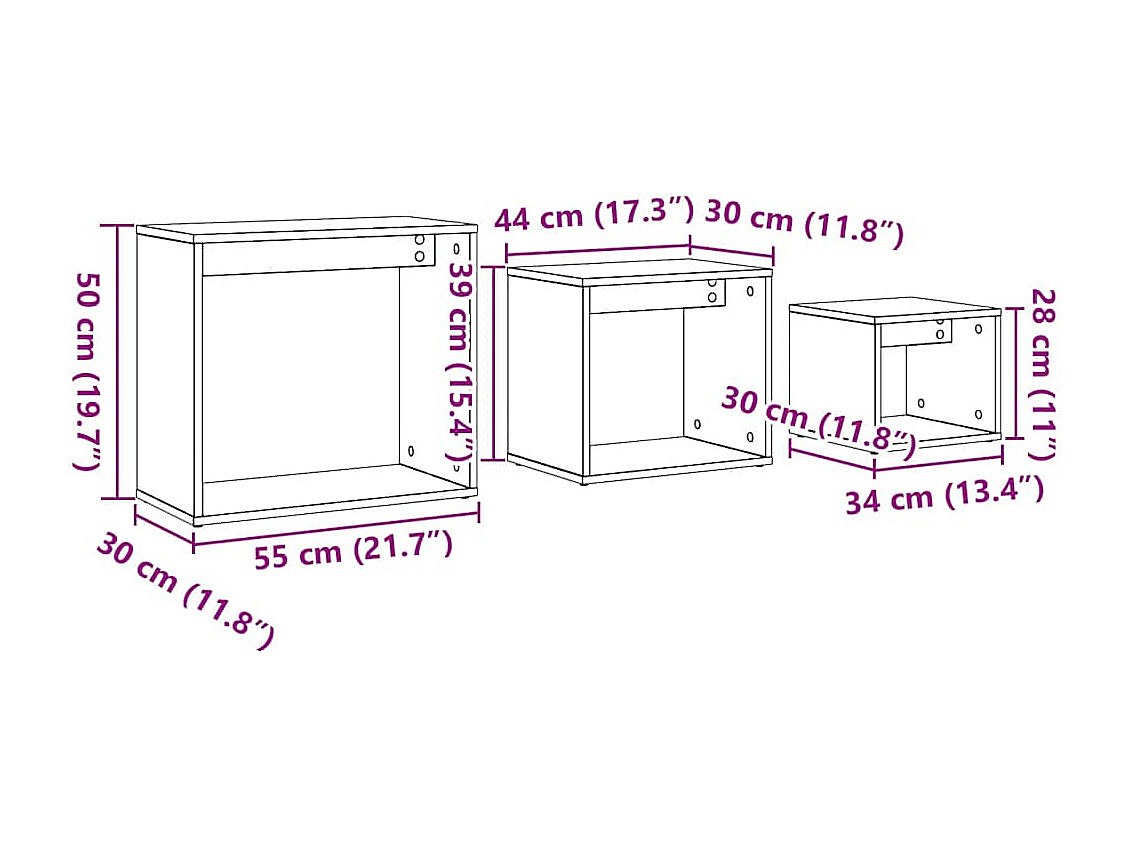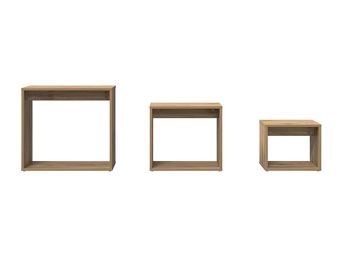 3-delige Tafeltjesset bewerkt hout artisanaal eikenkleur