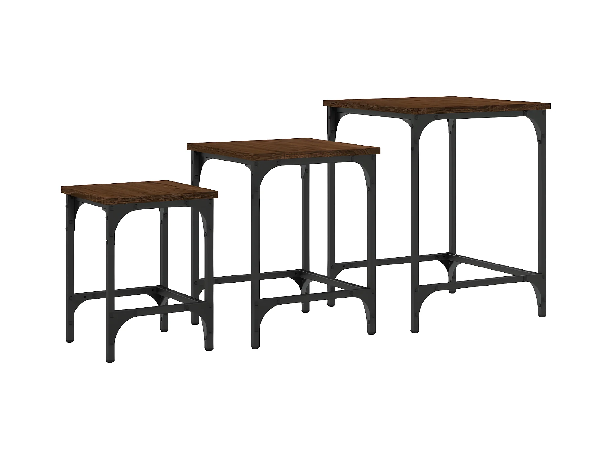3-delige Tafeltjesset bewerkt hout bruin eikenkleur