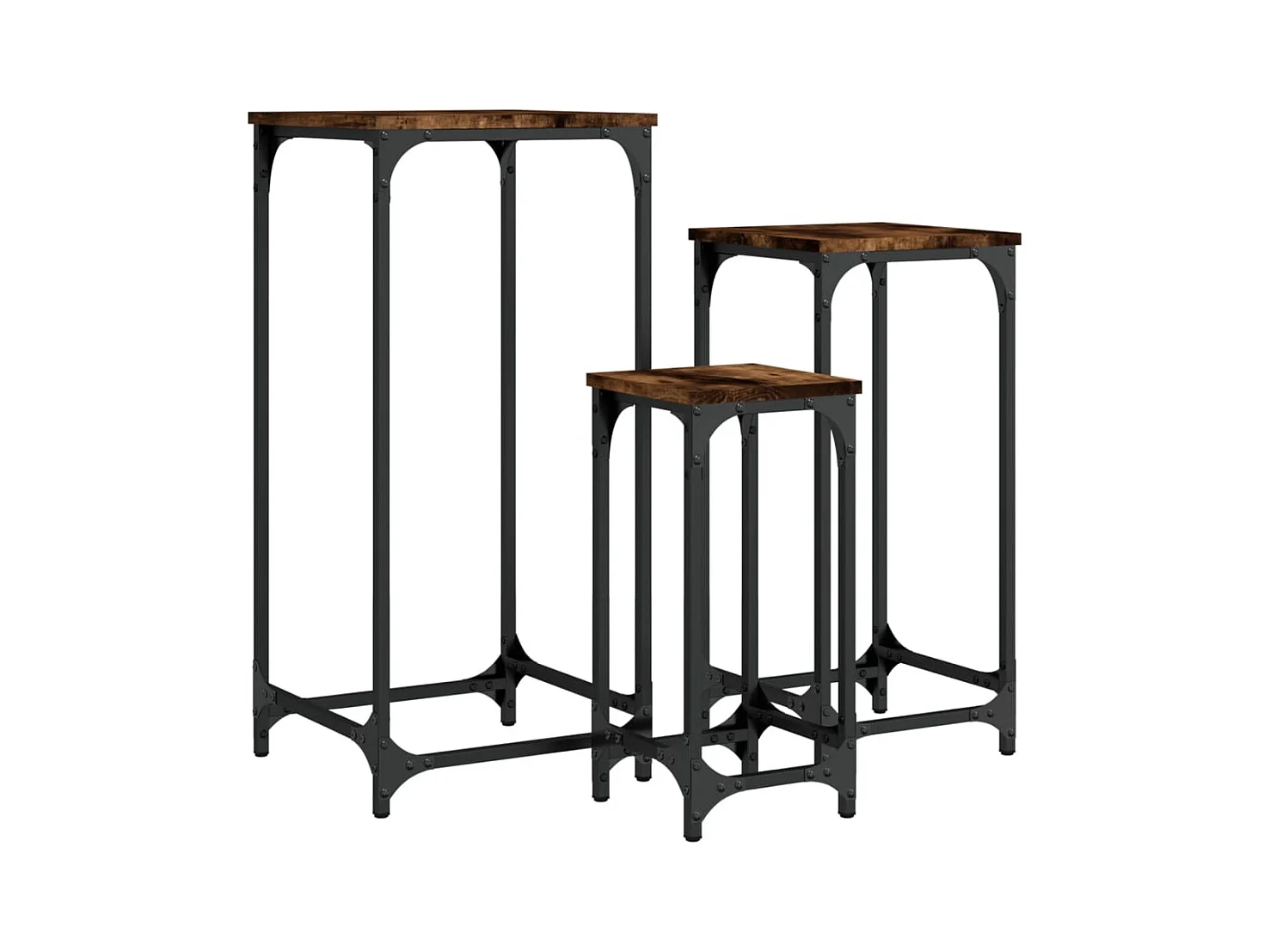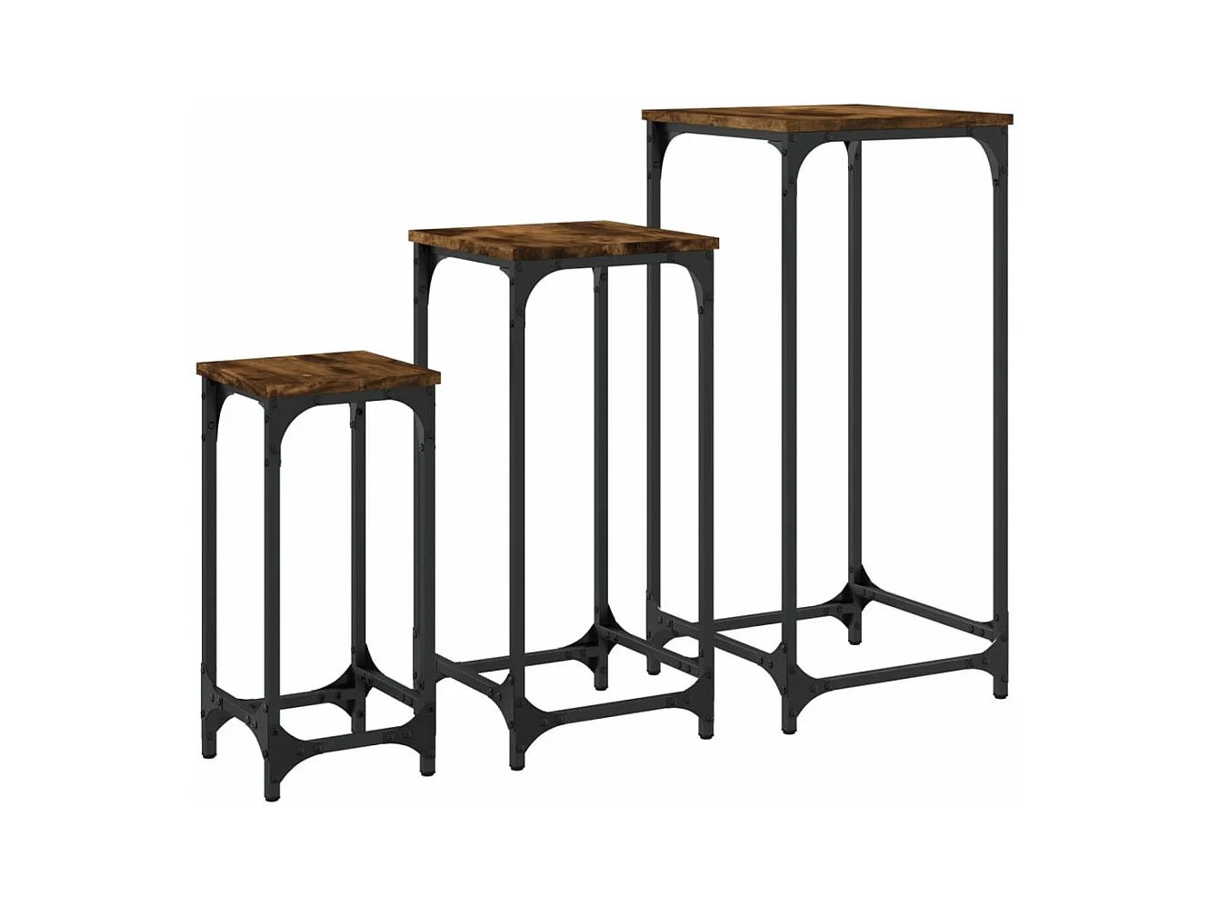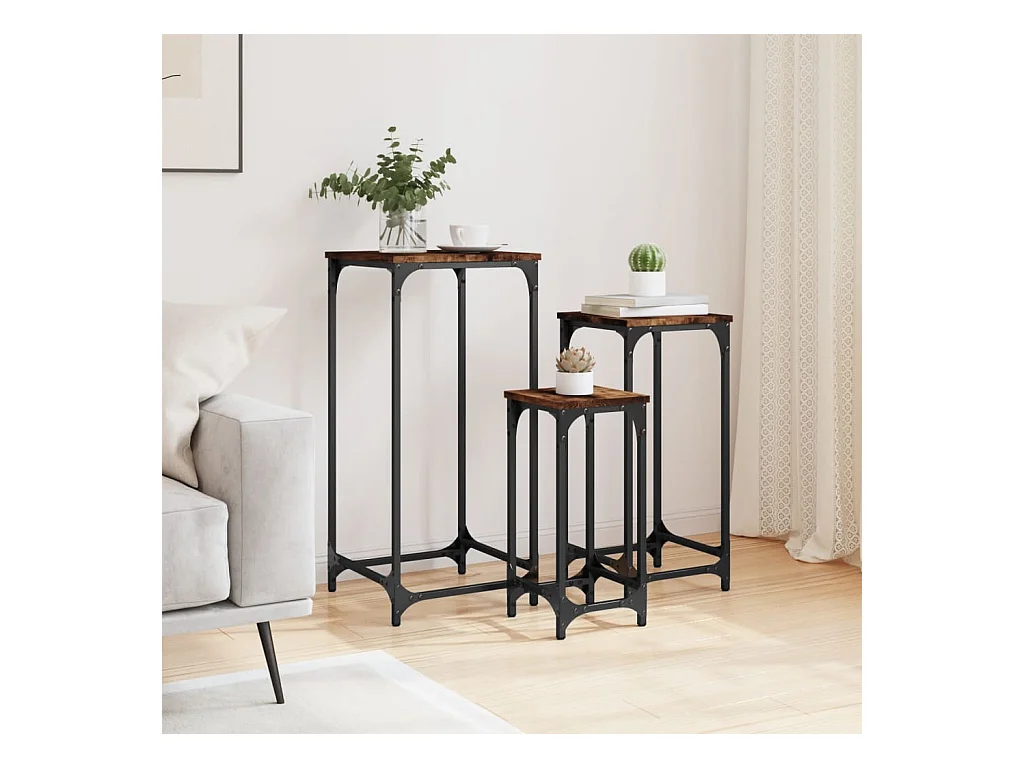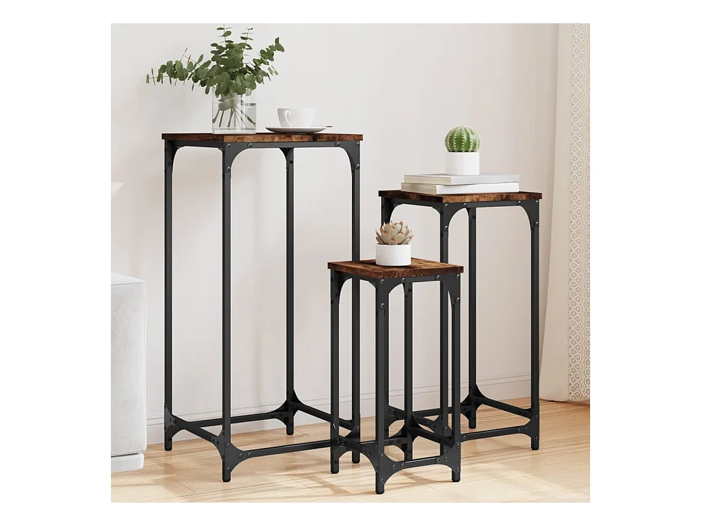 3-delige Tafeltjesset bewerkt hout gerookt eikenkleurig