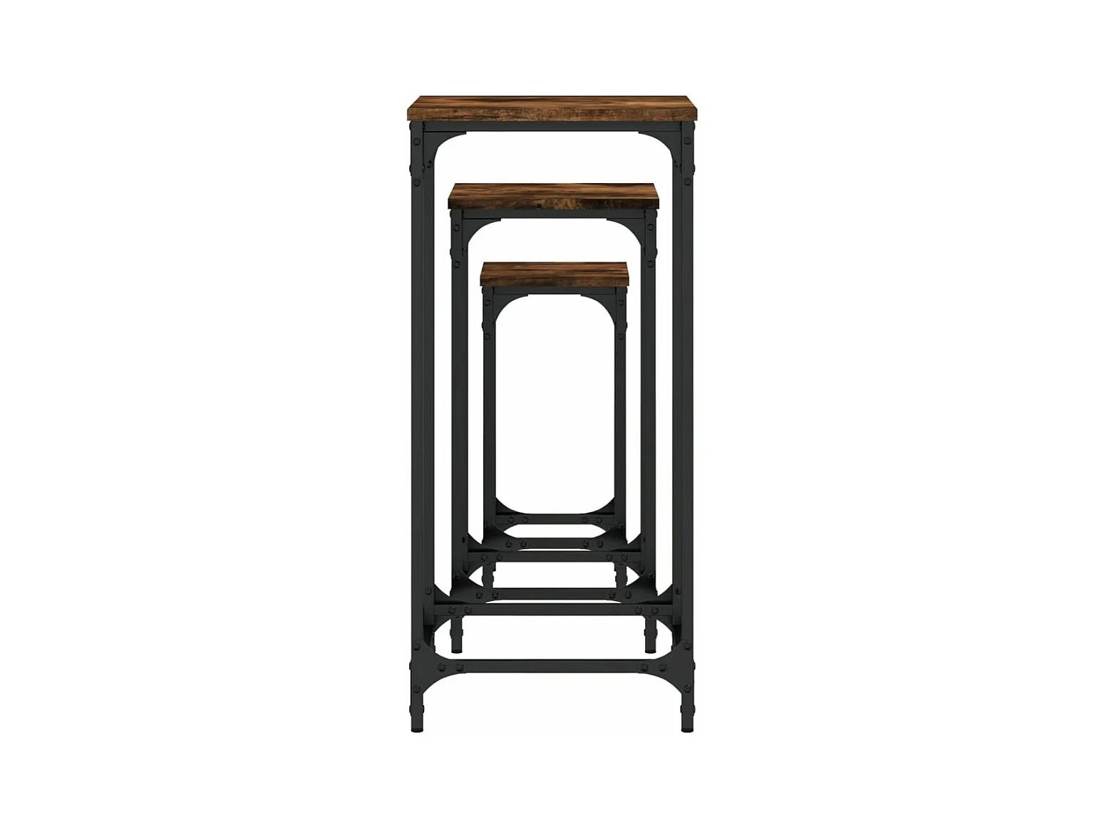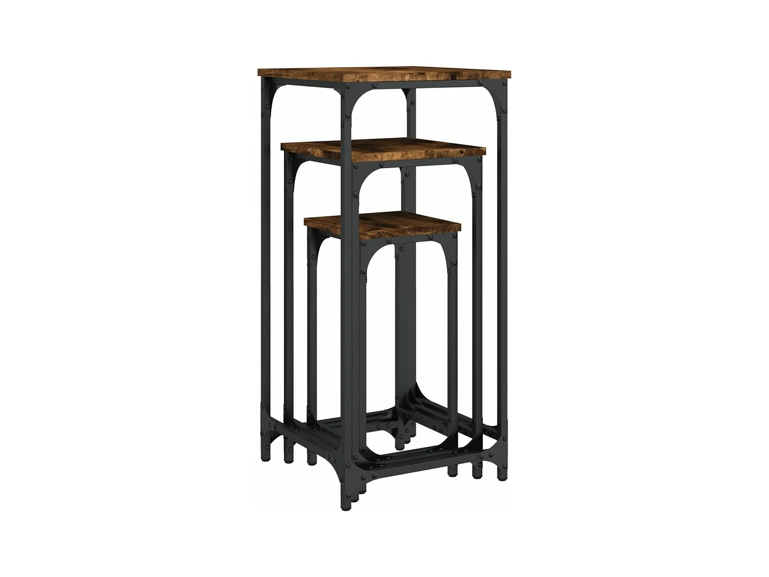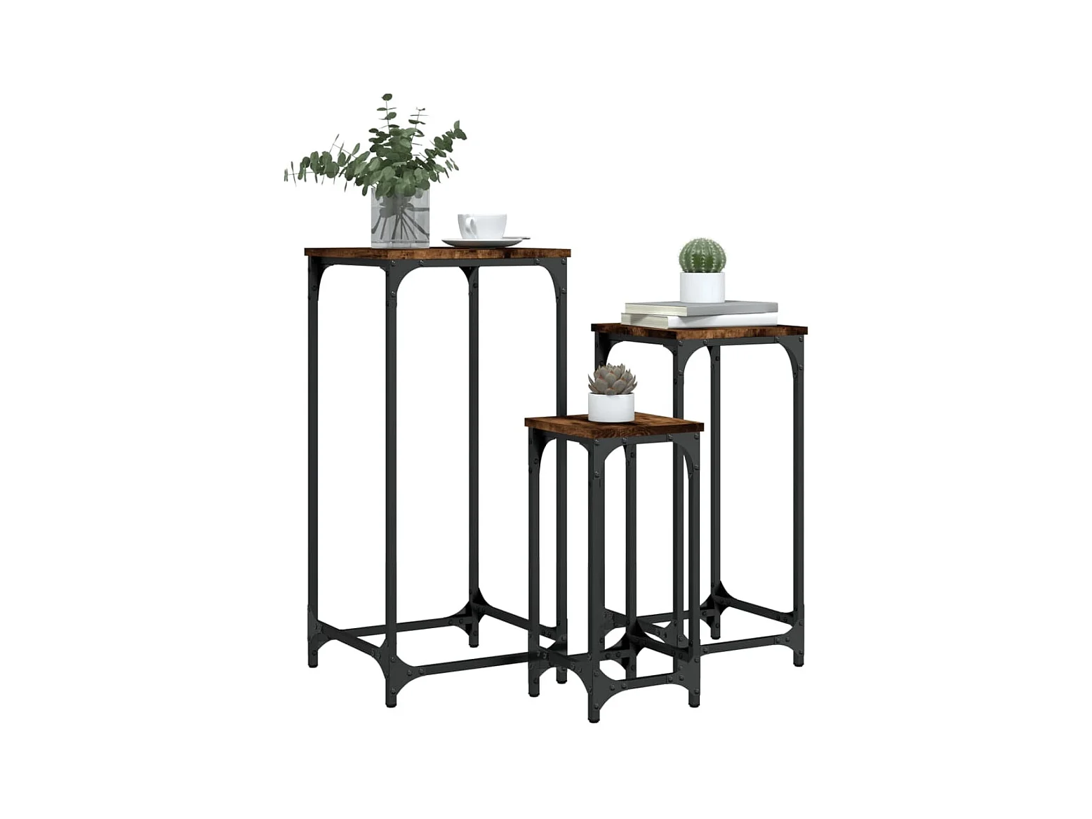 3-delige Tafeltjesset bewerkt hout gerookt eikenkleurig