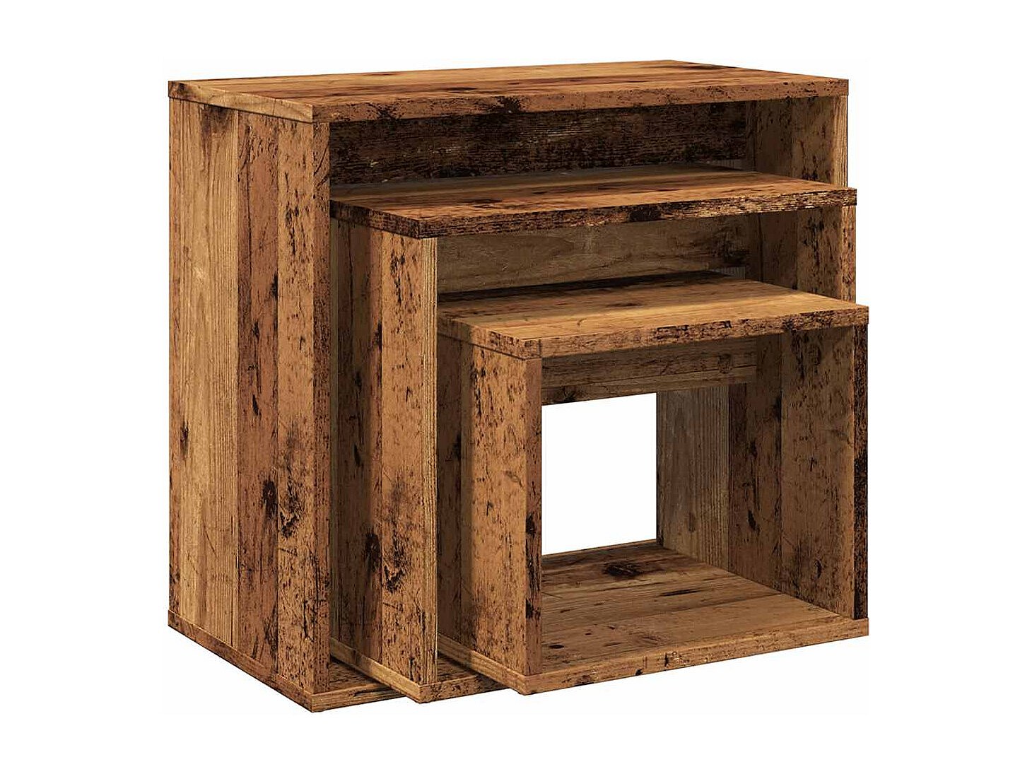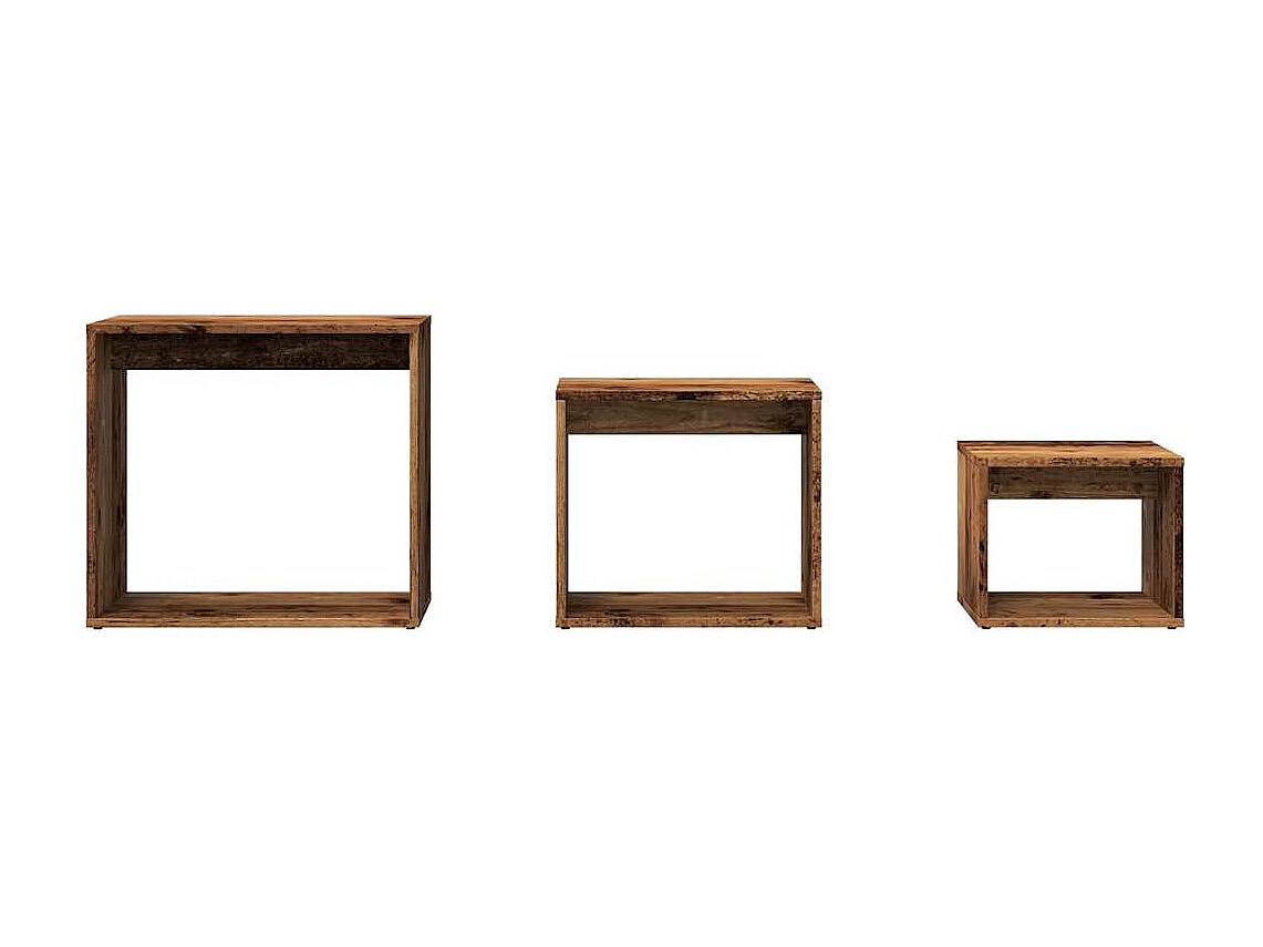 3-delige Tafeltjesset bewerkt hout oud houtkleurig