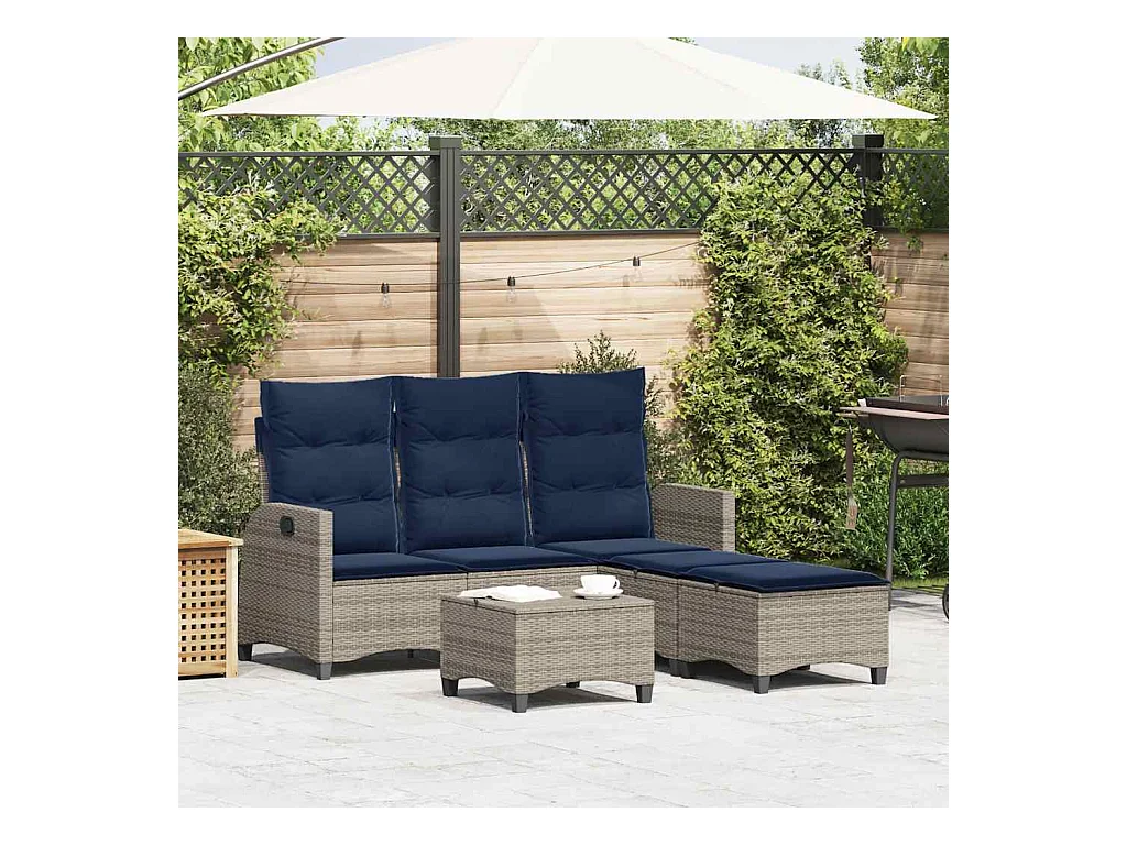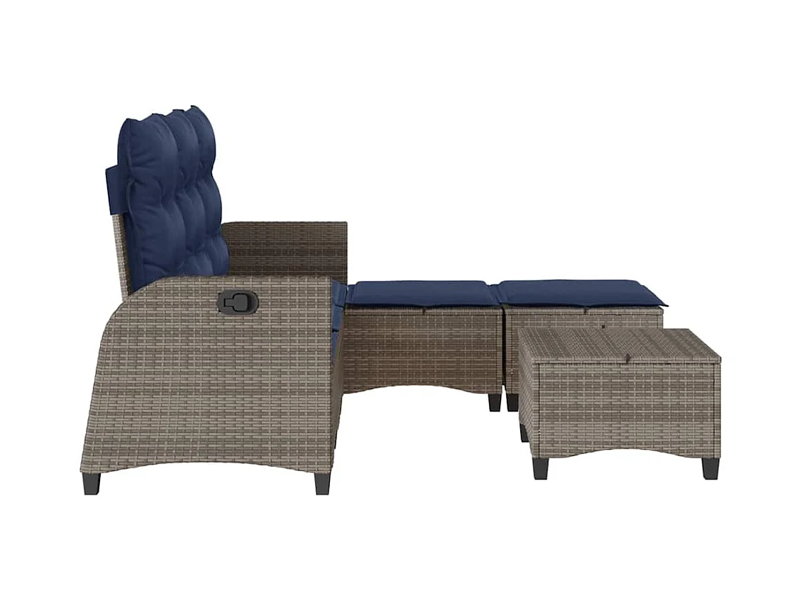 3-delige Tuinset met kussens poly rattan grijs