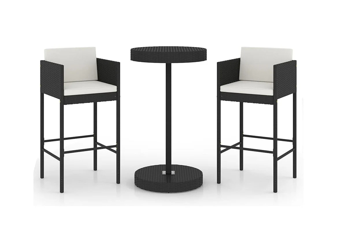 3-delige Tuinbarset met kussens poly rattan zwart BE247423