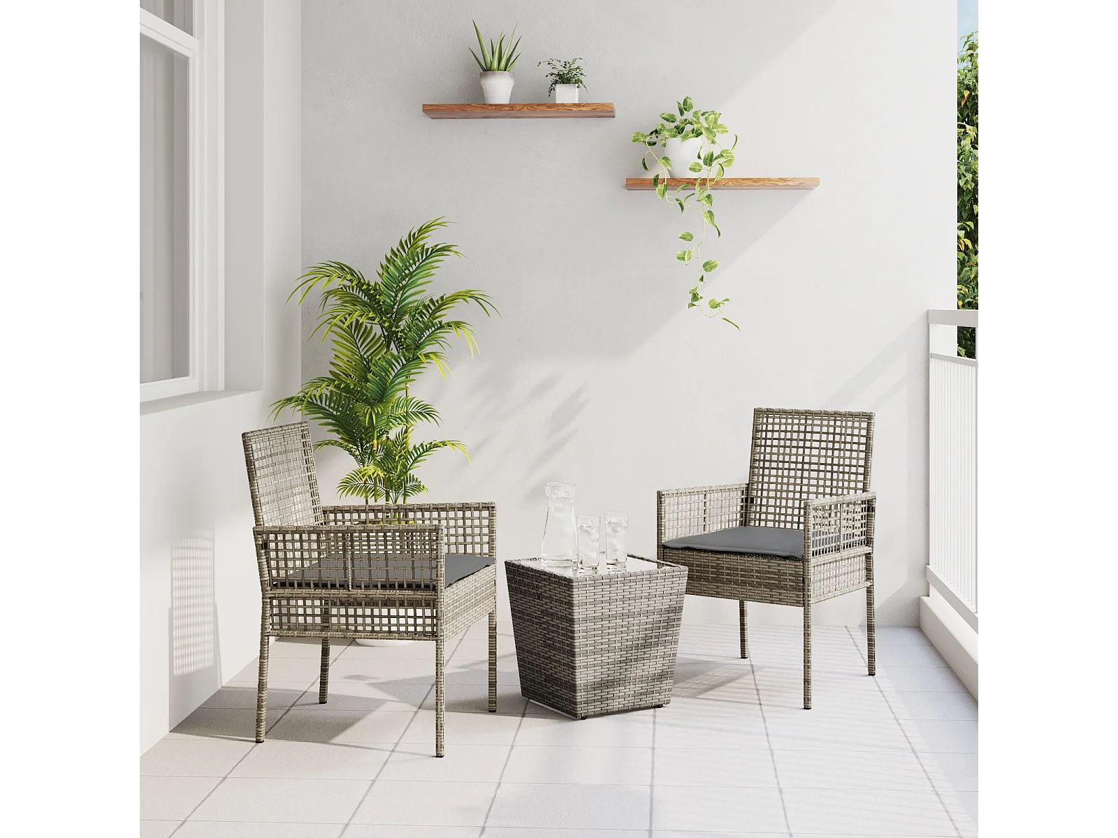 3-delige tuinbistroset met grijze polyrotan kussens
