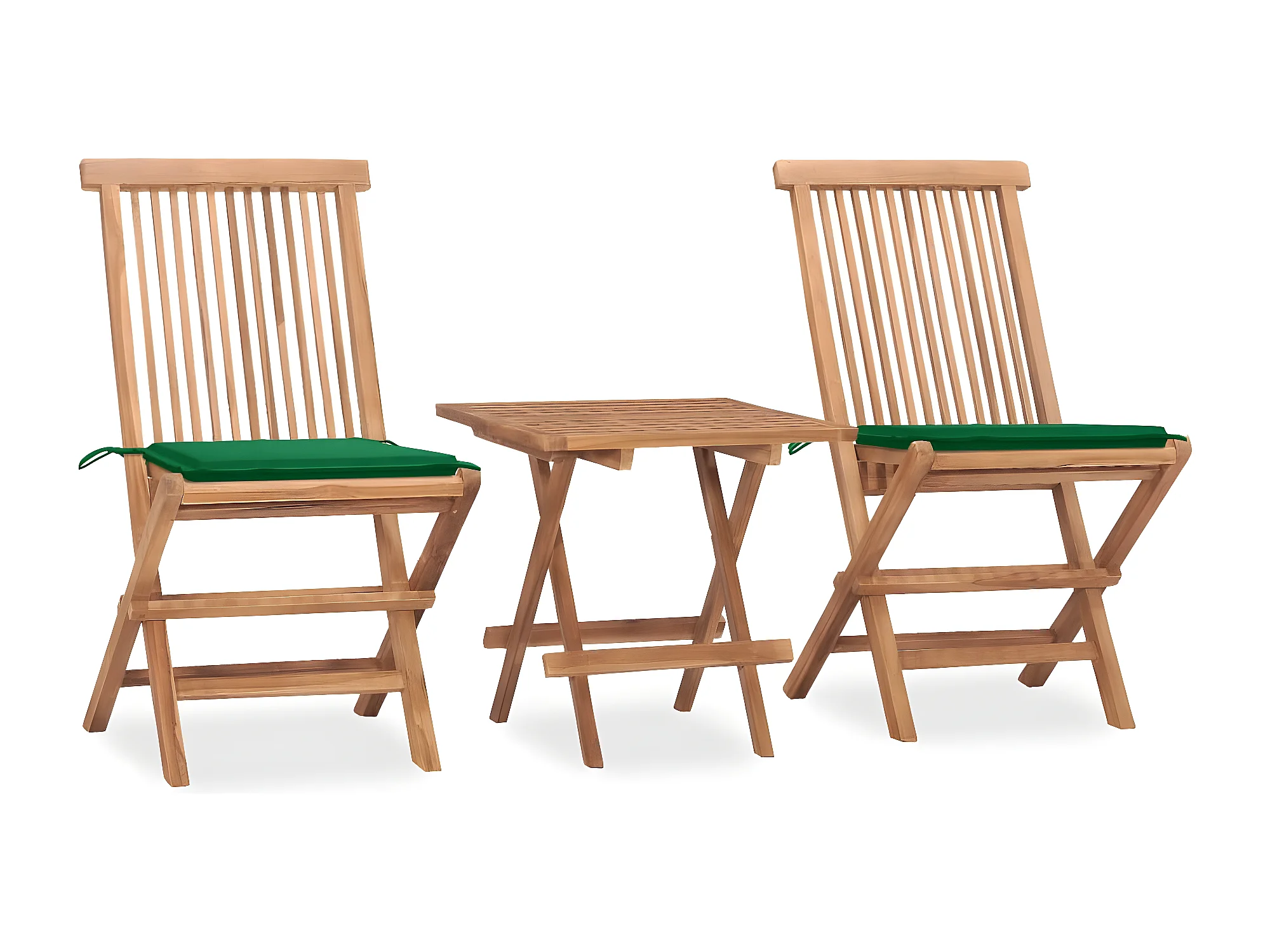 3-delige Tuinset inklapbaar met kussen massief teakhout NL805085