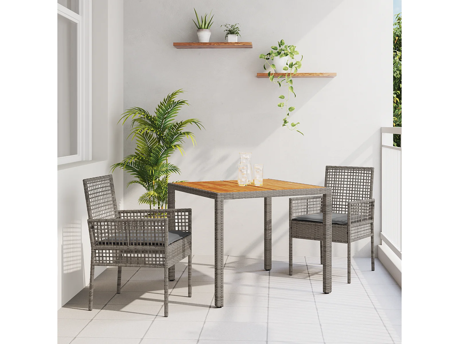 3-delige tuinset met grijze kussens van synthetisch rotan