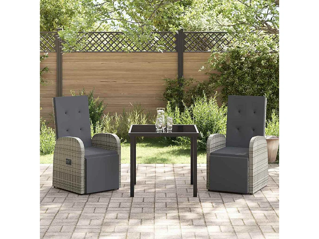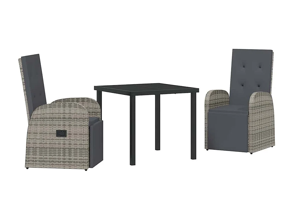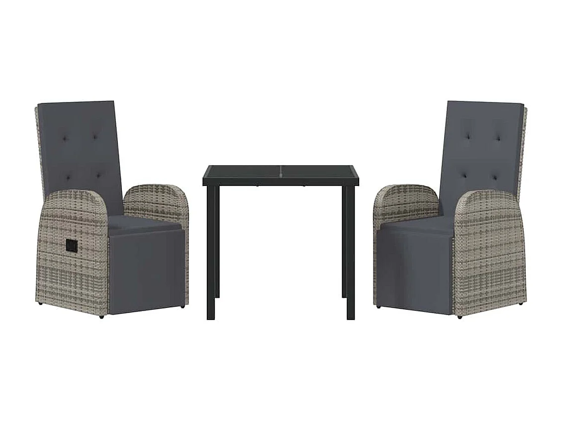 3-delige tuinset met grijze polyrotan kussens