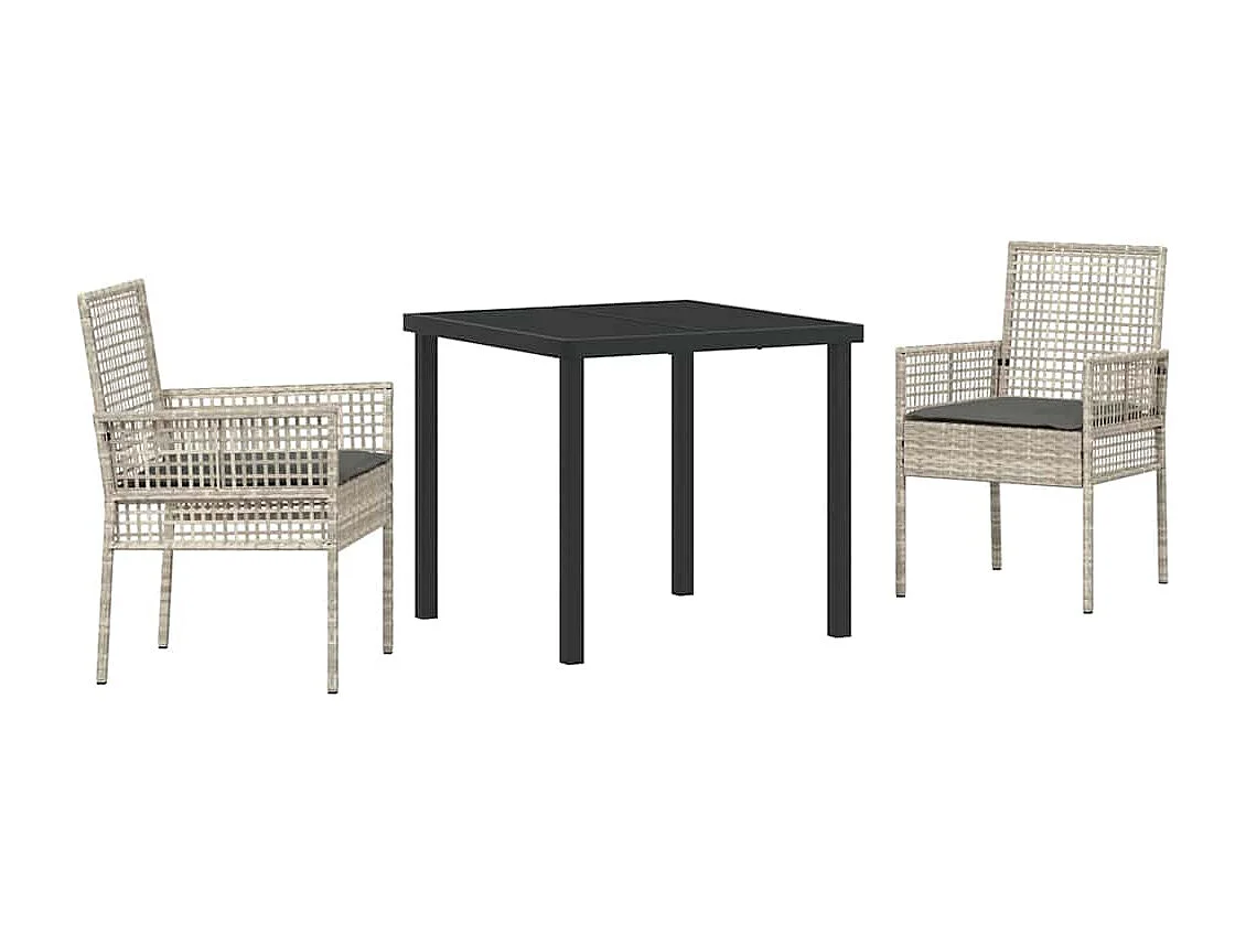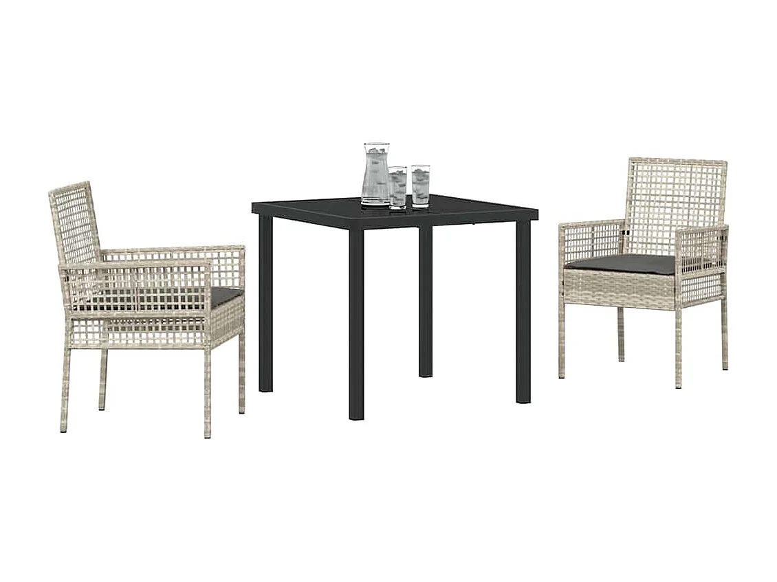 3-delige tuinset met kussens, lichtgrijs rotan PE