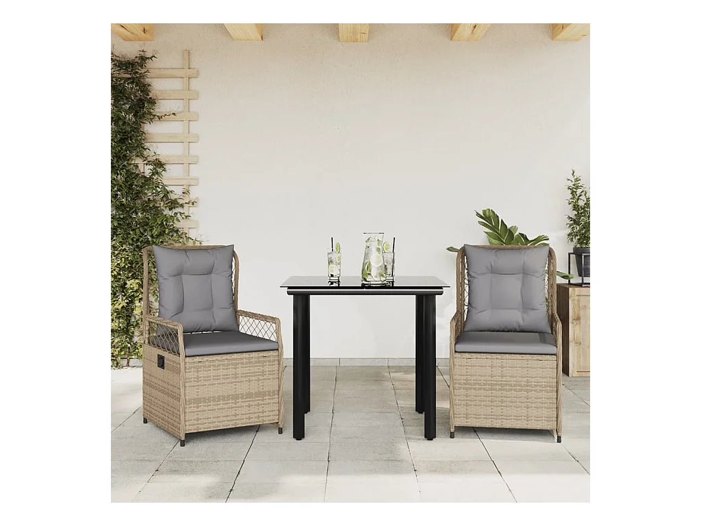3-delige Tuinset met kussens poly rattan beige BE559804