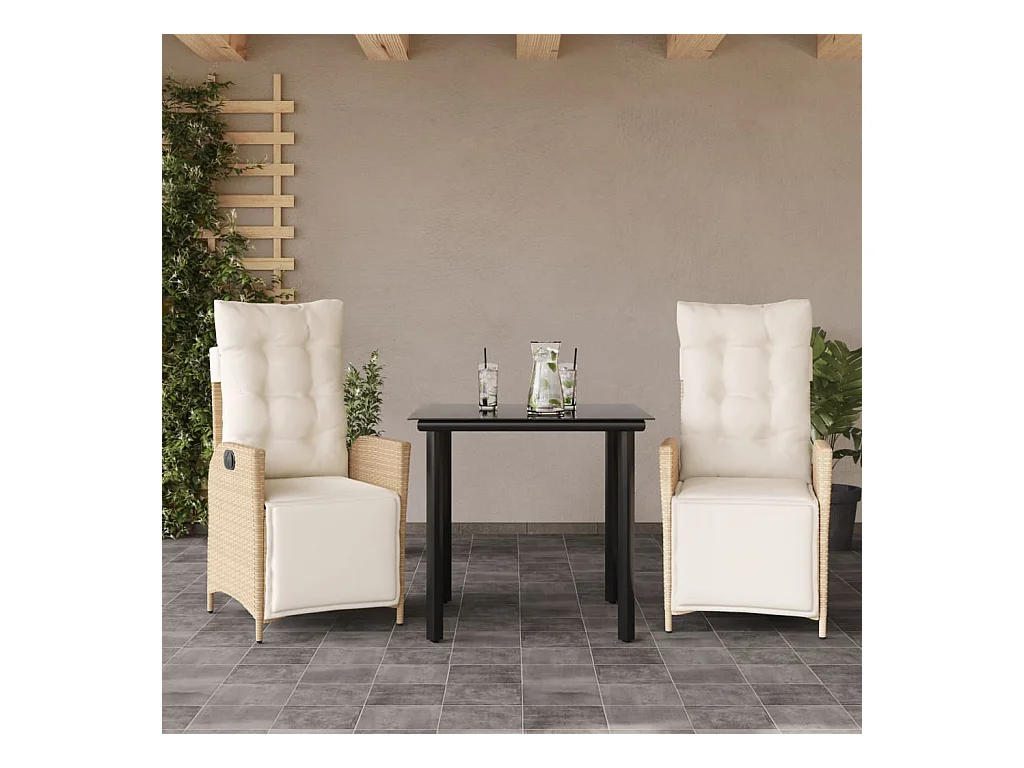 3-delige Tuinset met kussens poly rattan beige BE861175