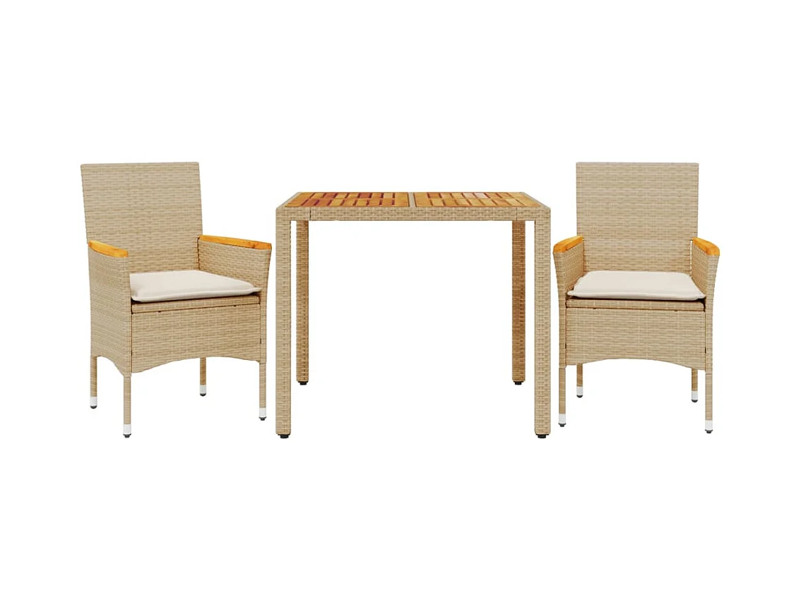 3-delige Tuinset met kussens poly rattan en acaciahout beige BE866431