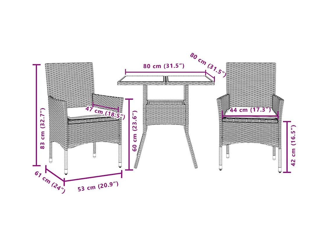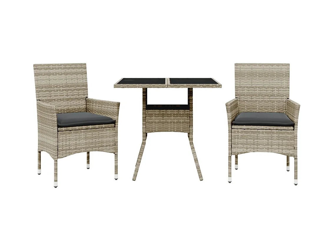 3-delige Tuinset met kussens poly rattan en glas grijs