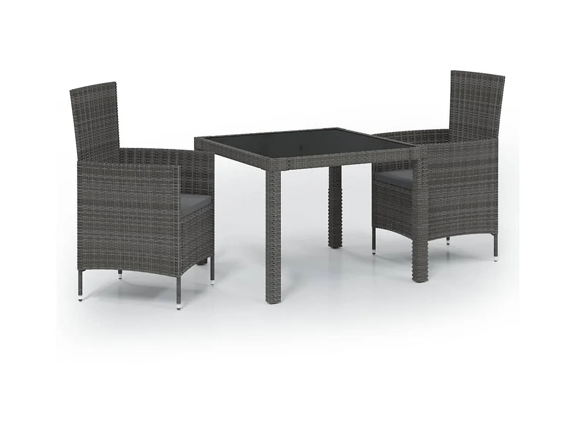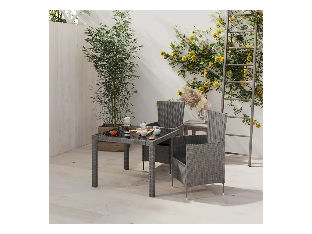 3-delige Bistroset poly rattan en gehard glas grijs NL304341