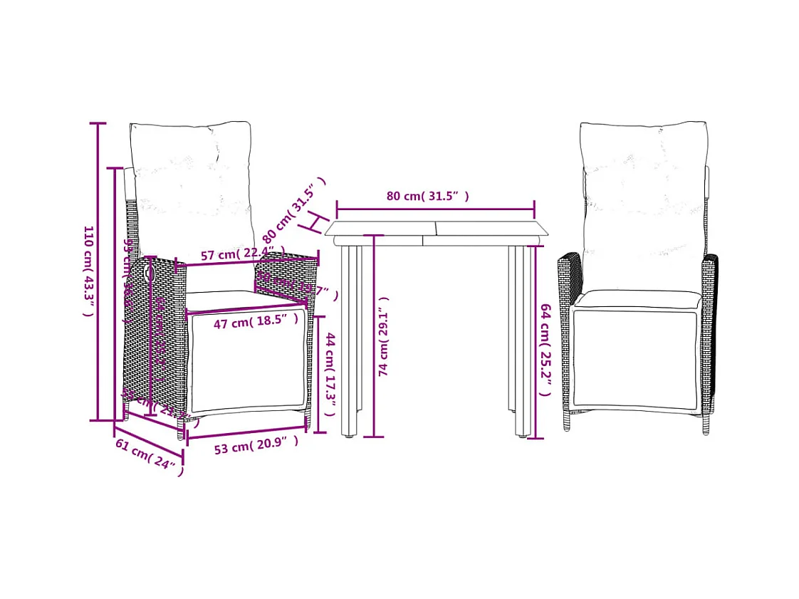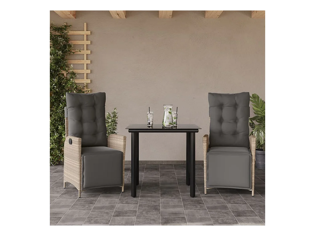 3-delige Bistroset met kussens poly rattan gemengd beige