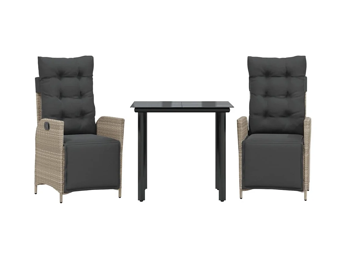 3-delige Tuinset met kussens poly rattan lichtgrijs
