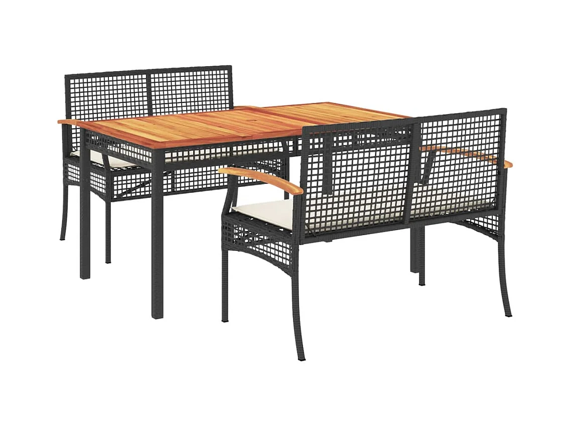 3-delige Tuinset met kussens poly rattan zwart BE234307