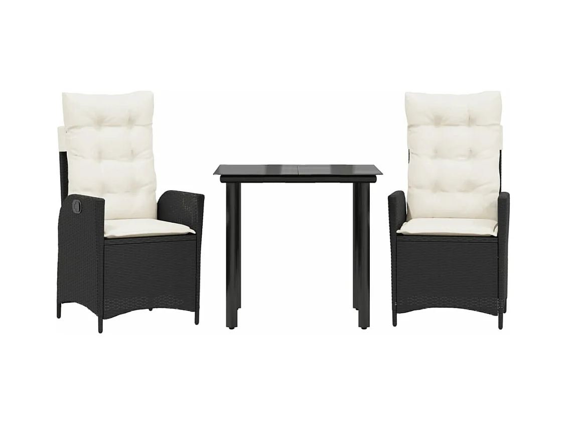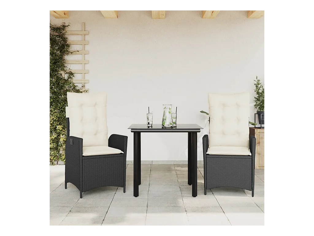 3-delige Tuinset met kussens poly rattan zwart BE738738