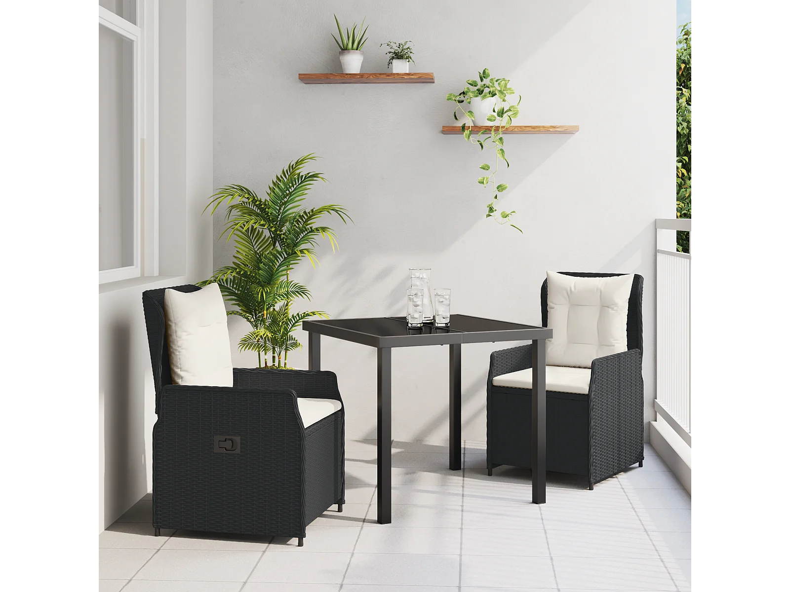 3-delige tuinset van zwart polyrotan