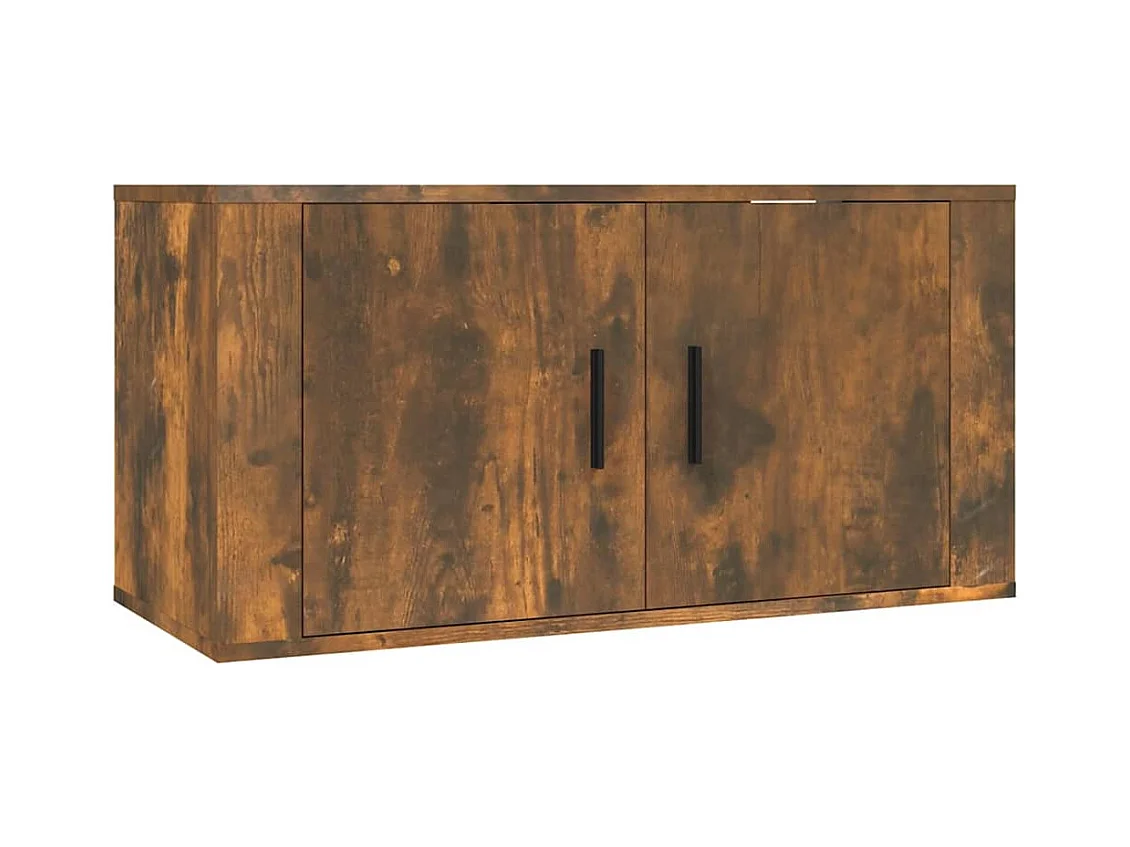 TV-meubel van gerookt eikenhout 80x34,5x40 cm, bewerkt hout en metaal
