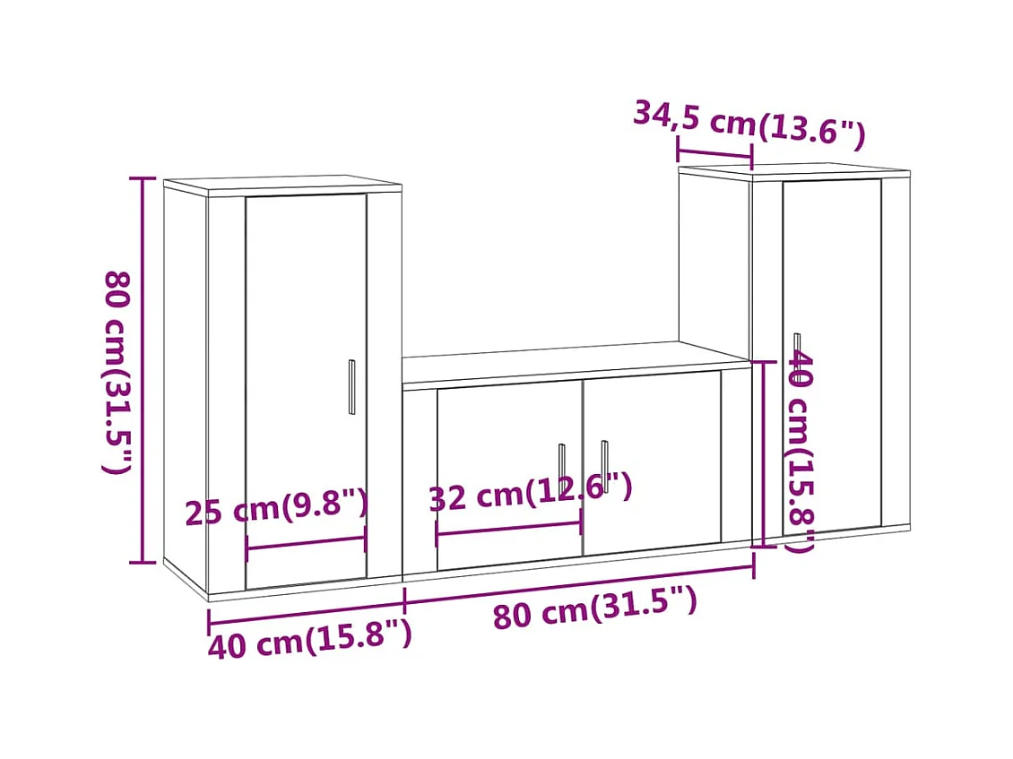 3-delige wandmeubels, Sonoma eiken, 80x34,5x40 cm