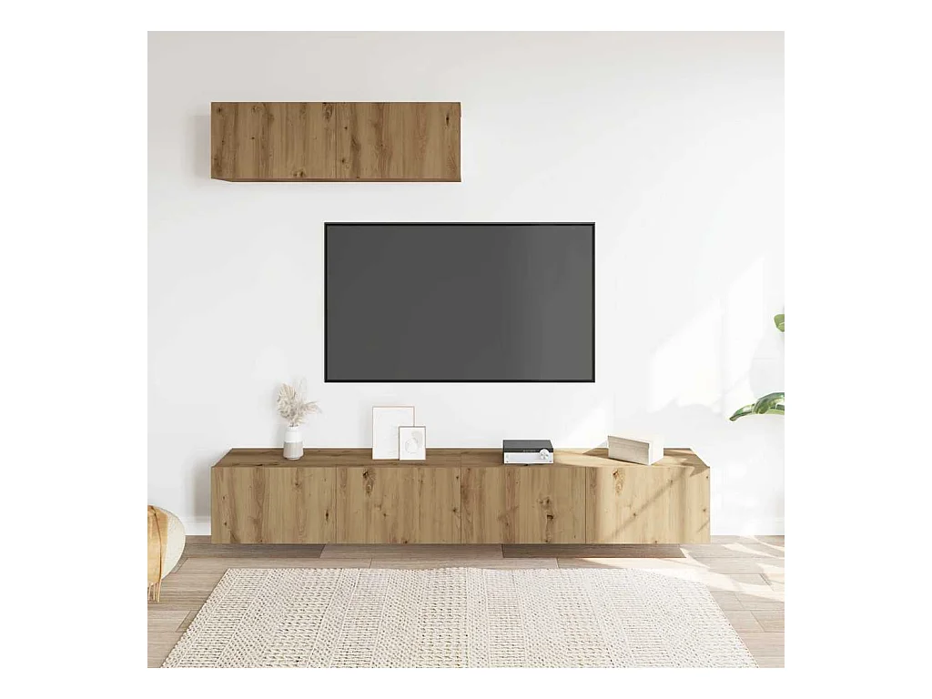 3-delige wand-tv-meubelset, oud hout, bewerkt hout