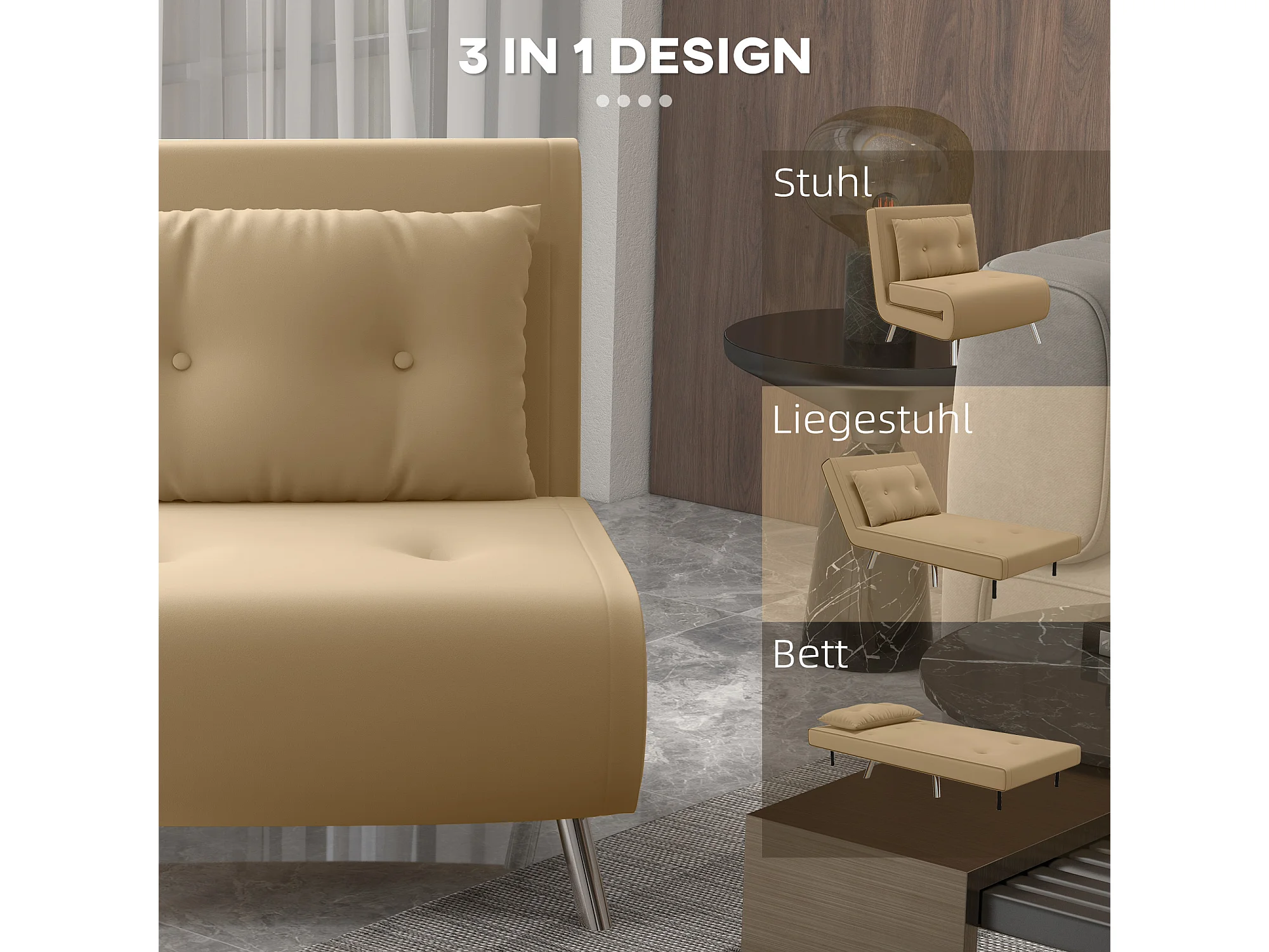 3-in-1 converteerbare fauteuil met bedfunctie, fluweel, inclusief kussen, bruin (77x88x83cm)