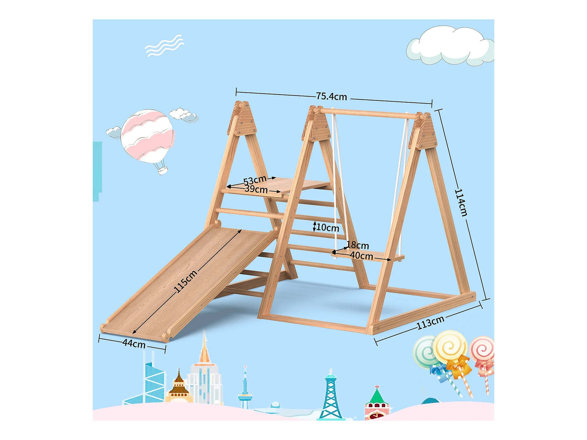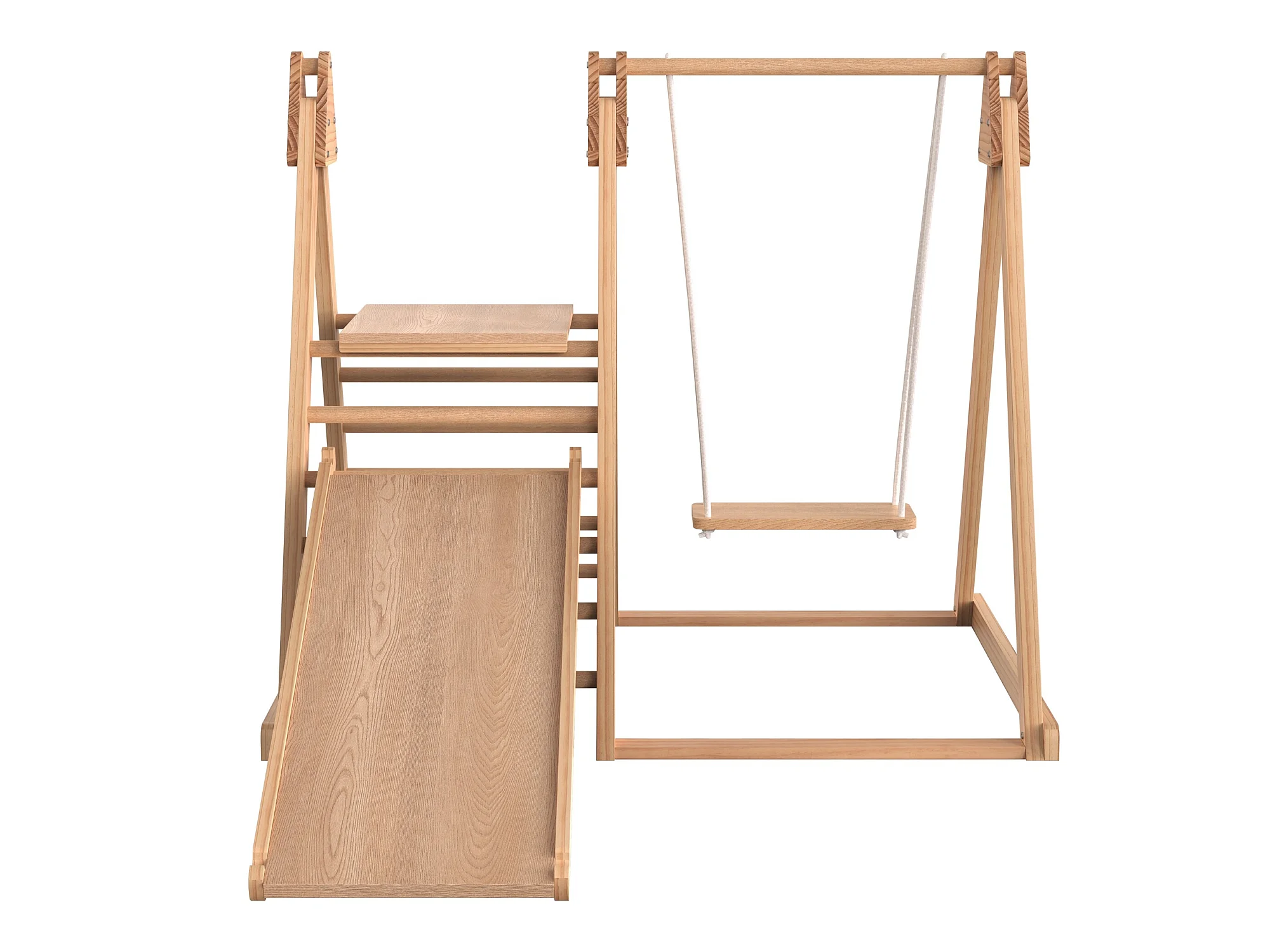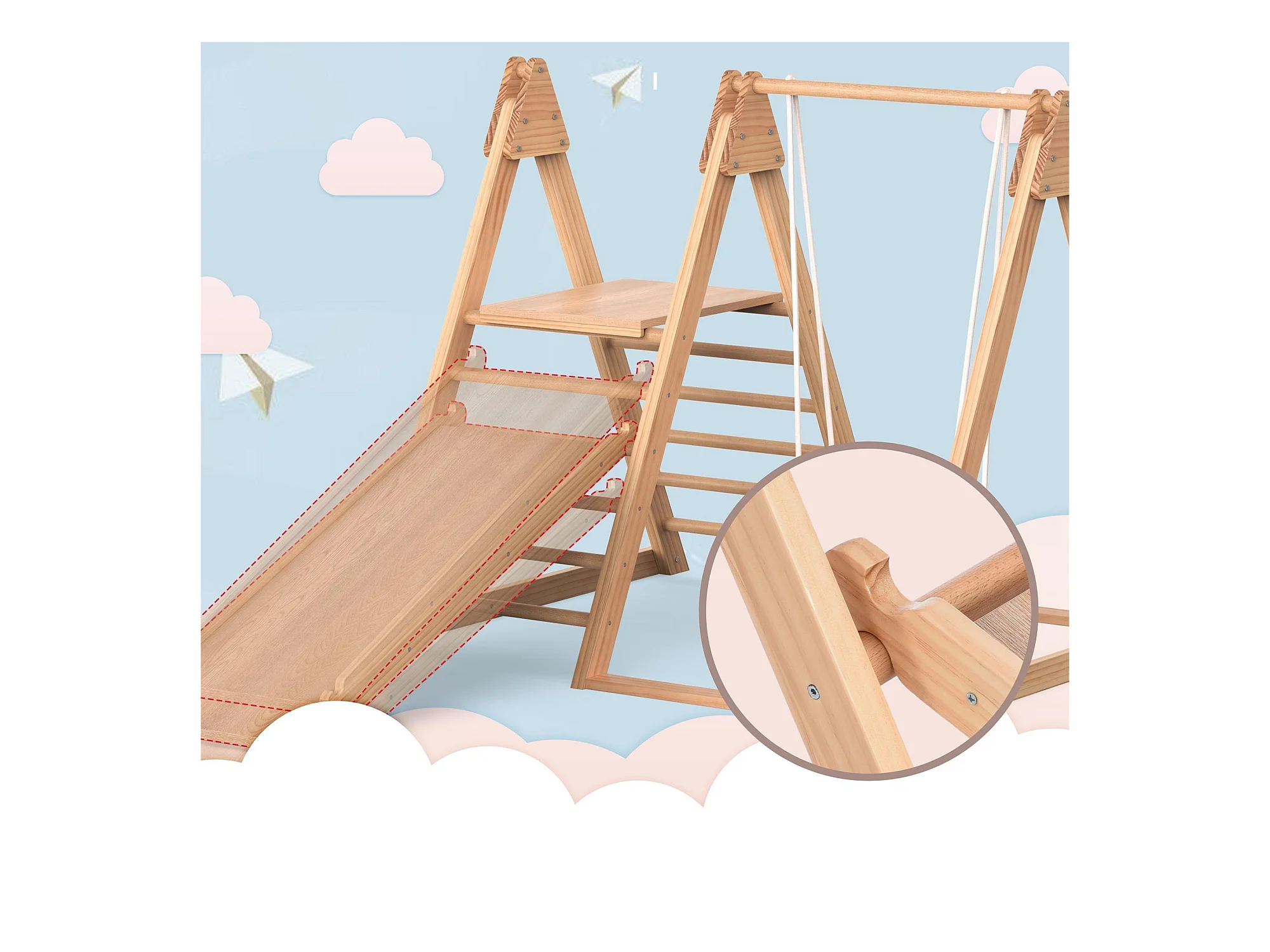 3 in 1 glijbaan - met trappen, schommels en glijbaantjes - massief grenen - naturel