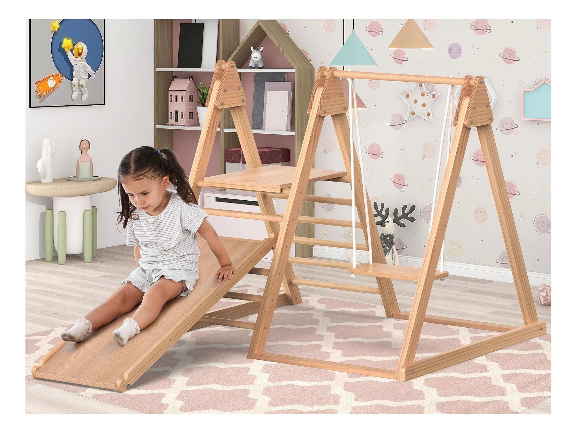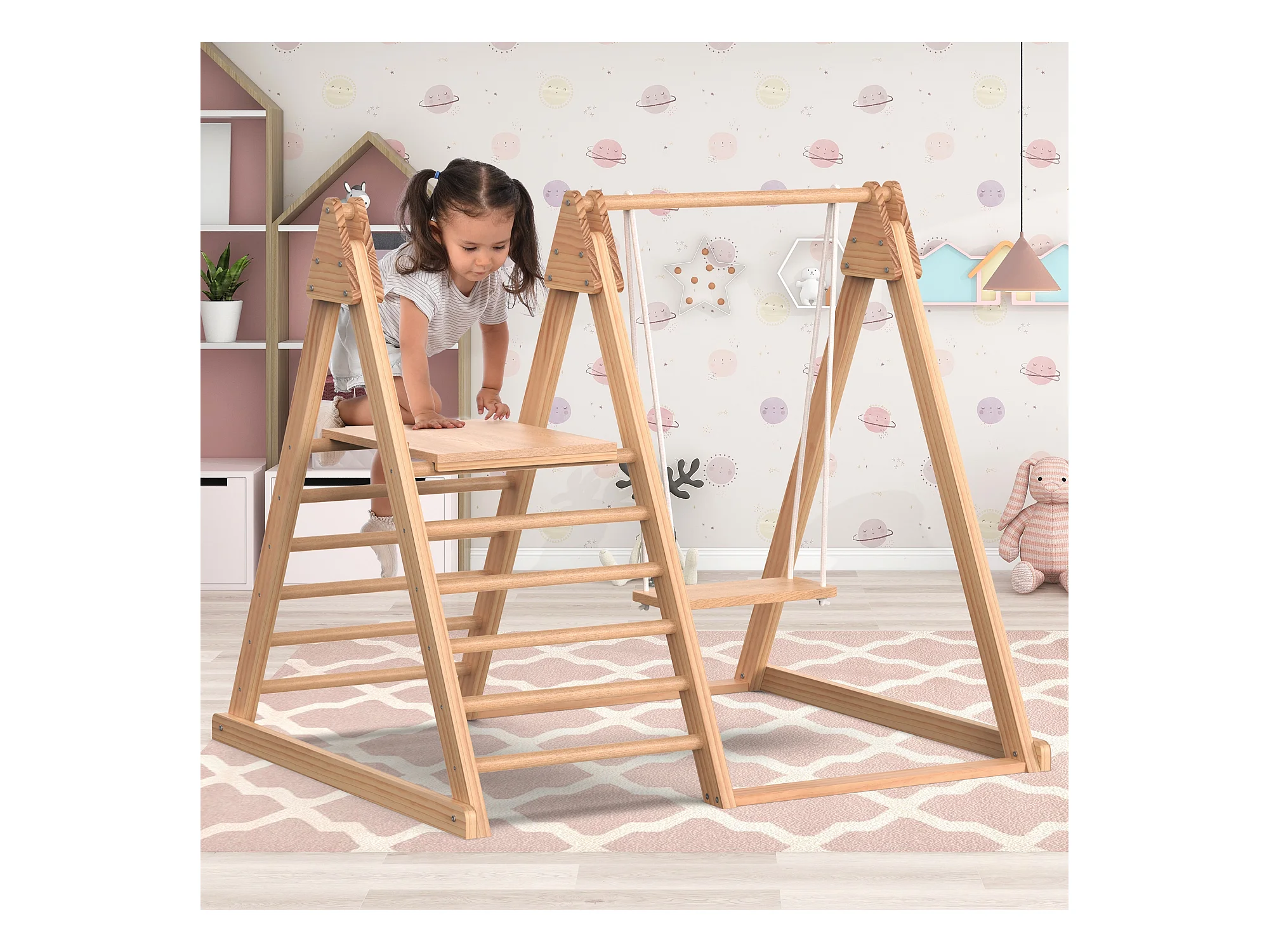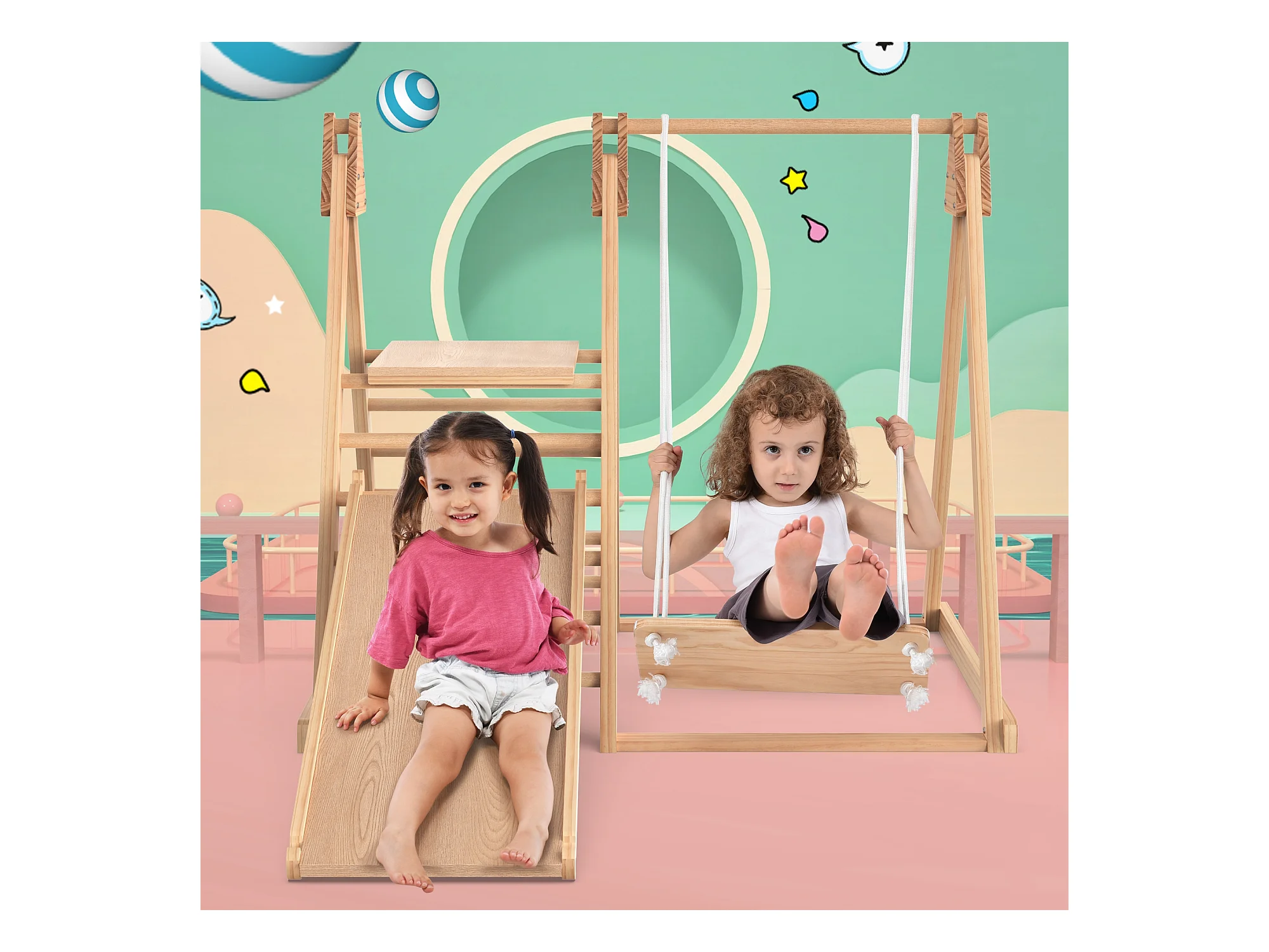 3 in 1 glijbaan - met trappen, schommels en glijbaantjes - massief grenen - naturel