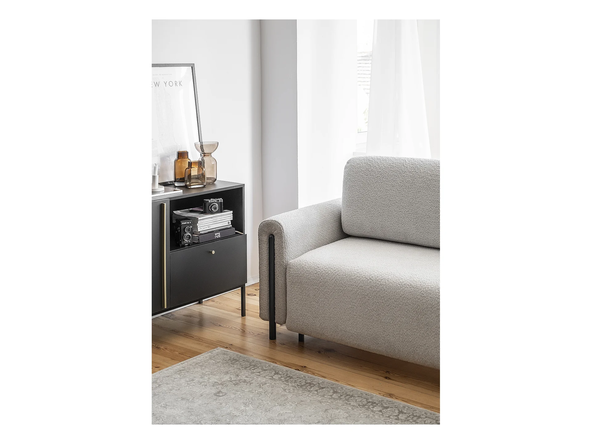 3-zits slaapbank in zachte donkergrijze stof met opbergdoos Larko 245 cm