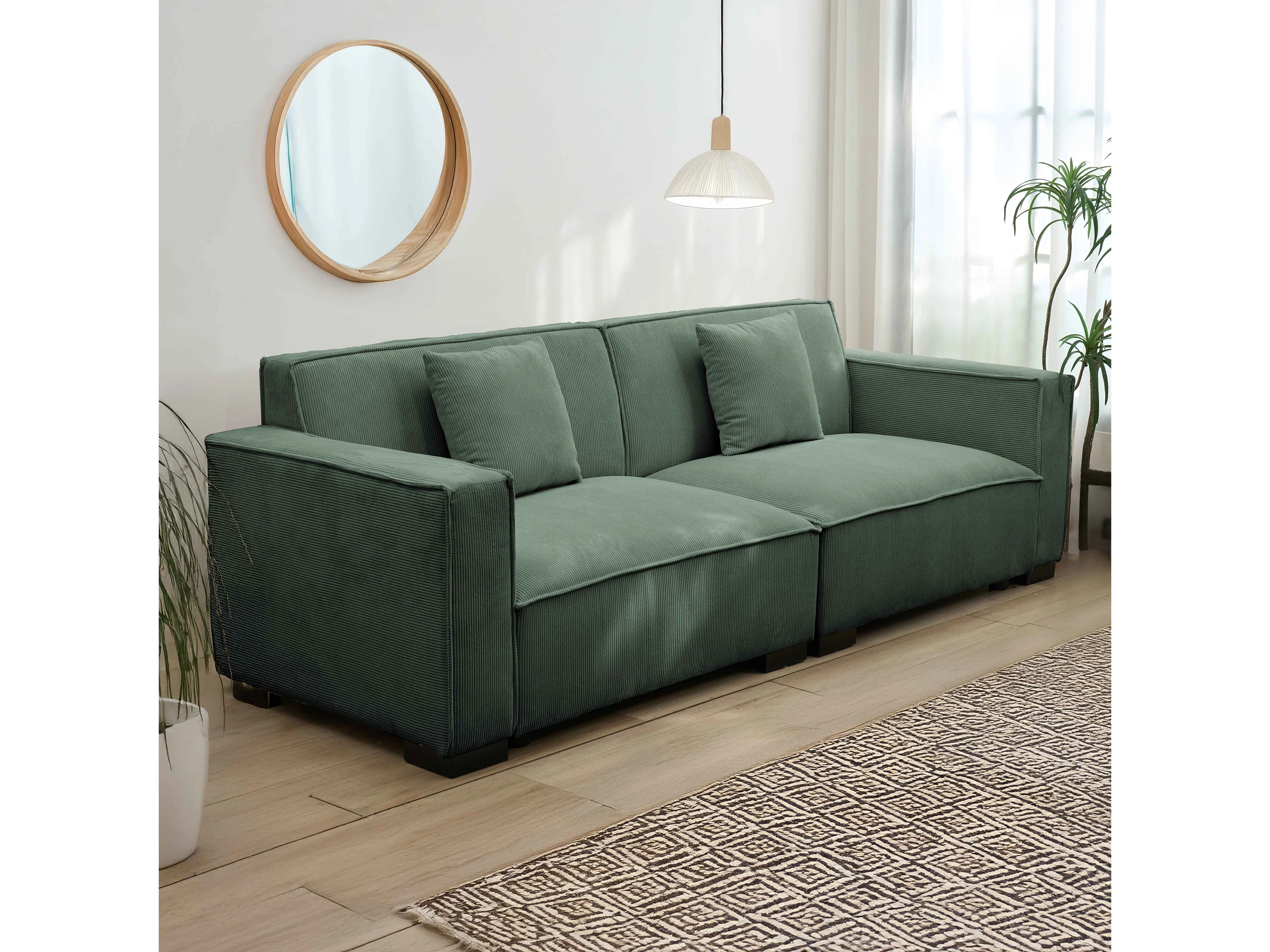 3-zits groene corduroy rechte bank L 230 cm