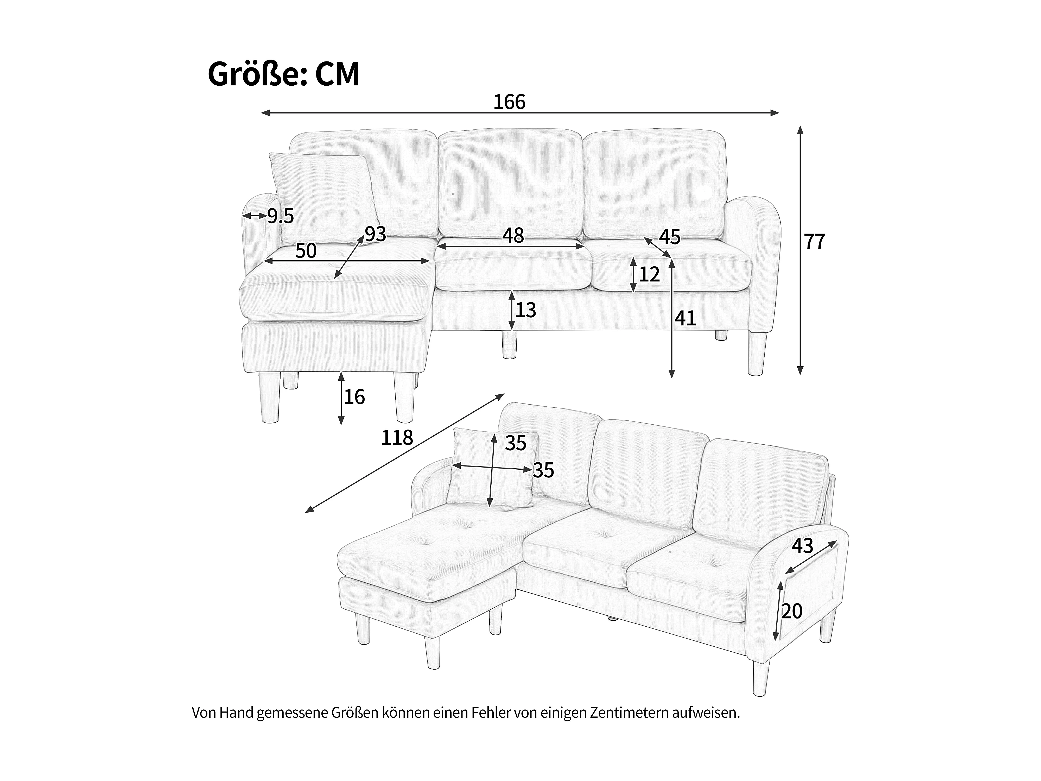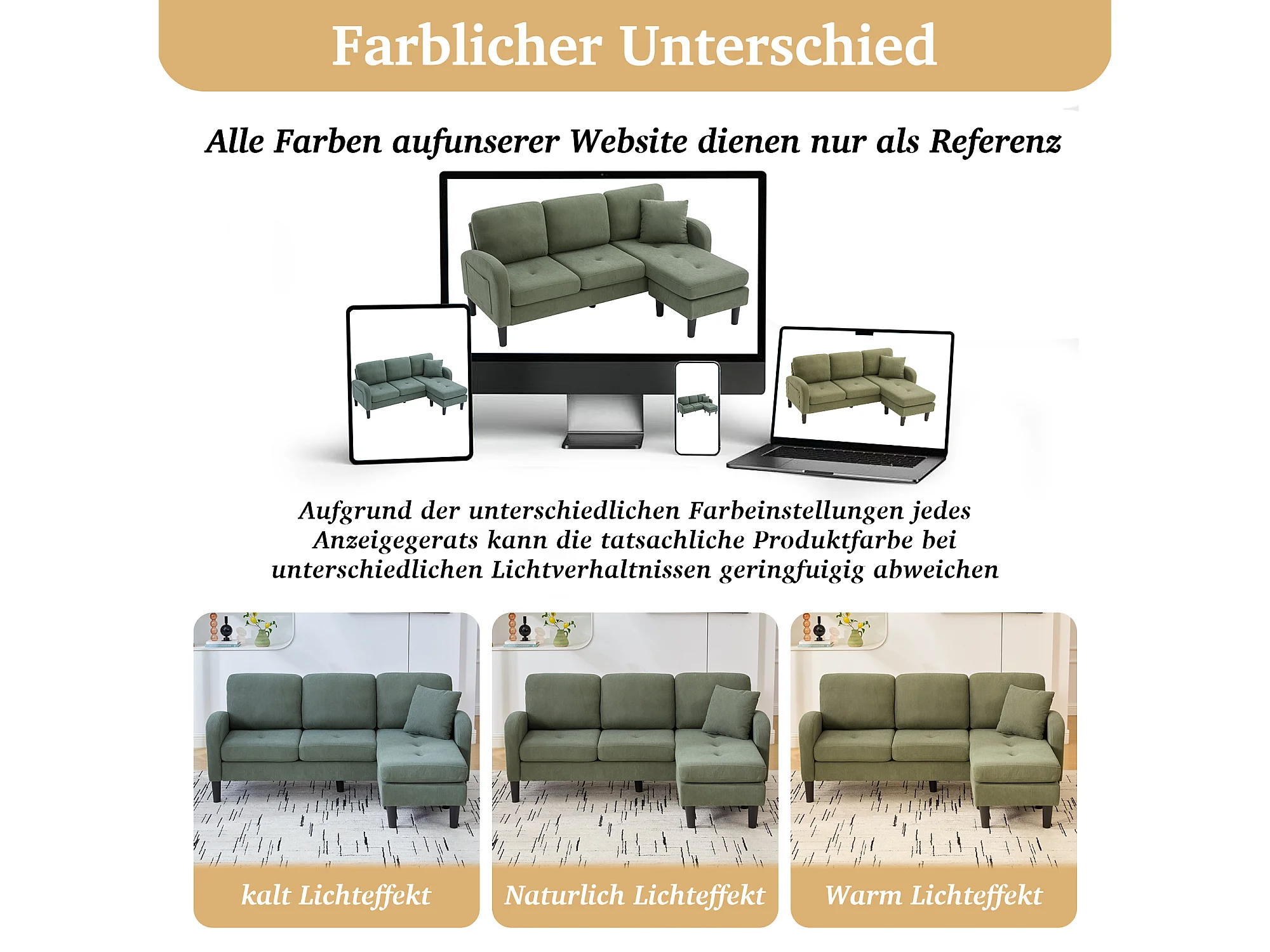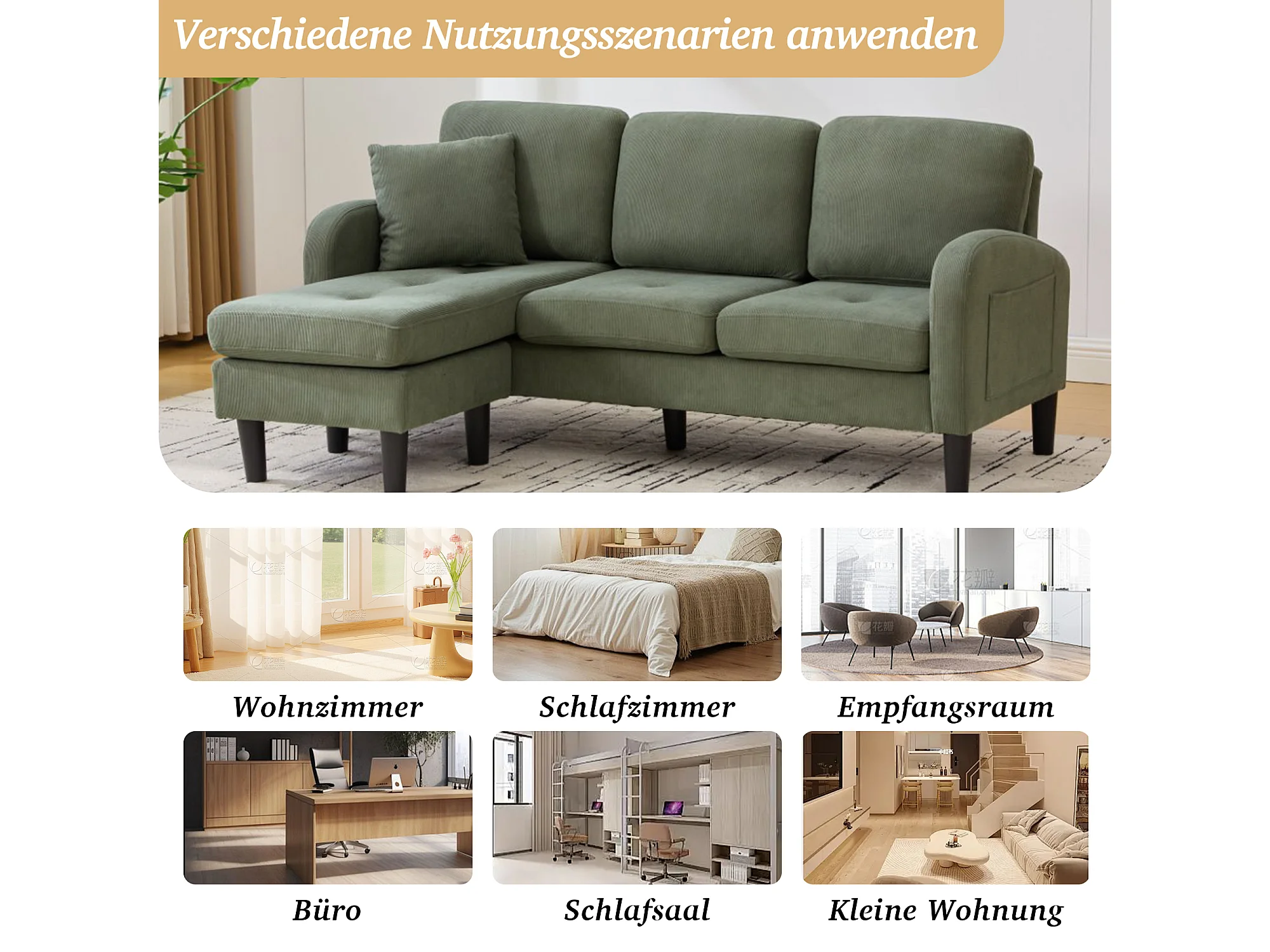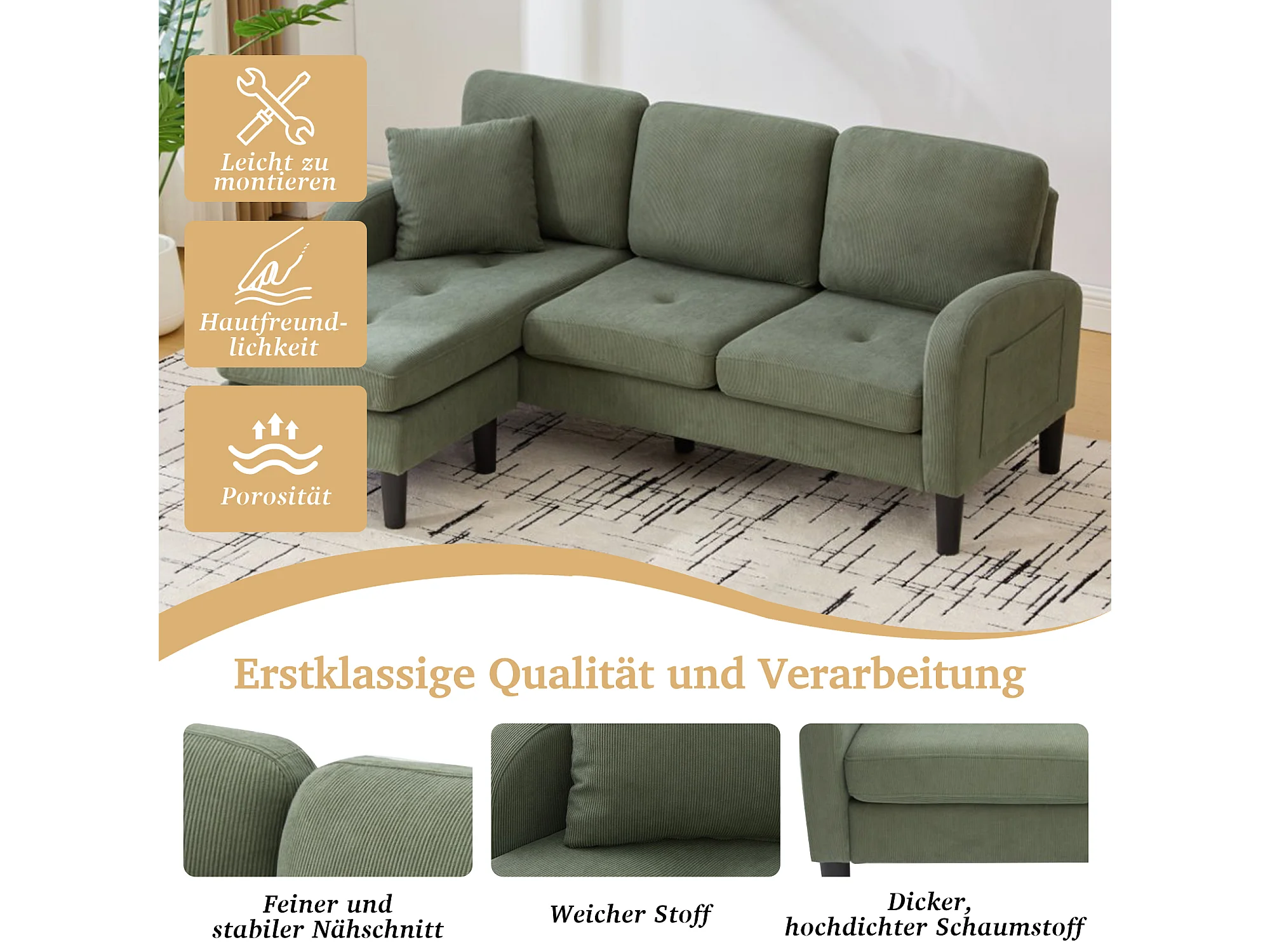 3-zits hoekbank met chaise longue - 166 x 118 x 77 cm - fluwelen stof - kunststof poten - groen
