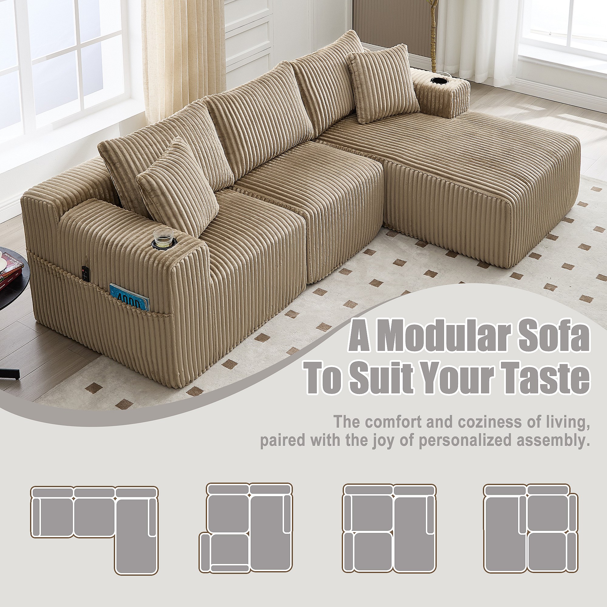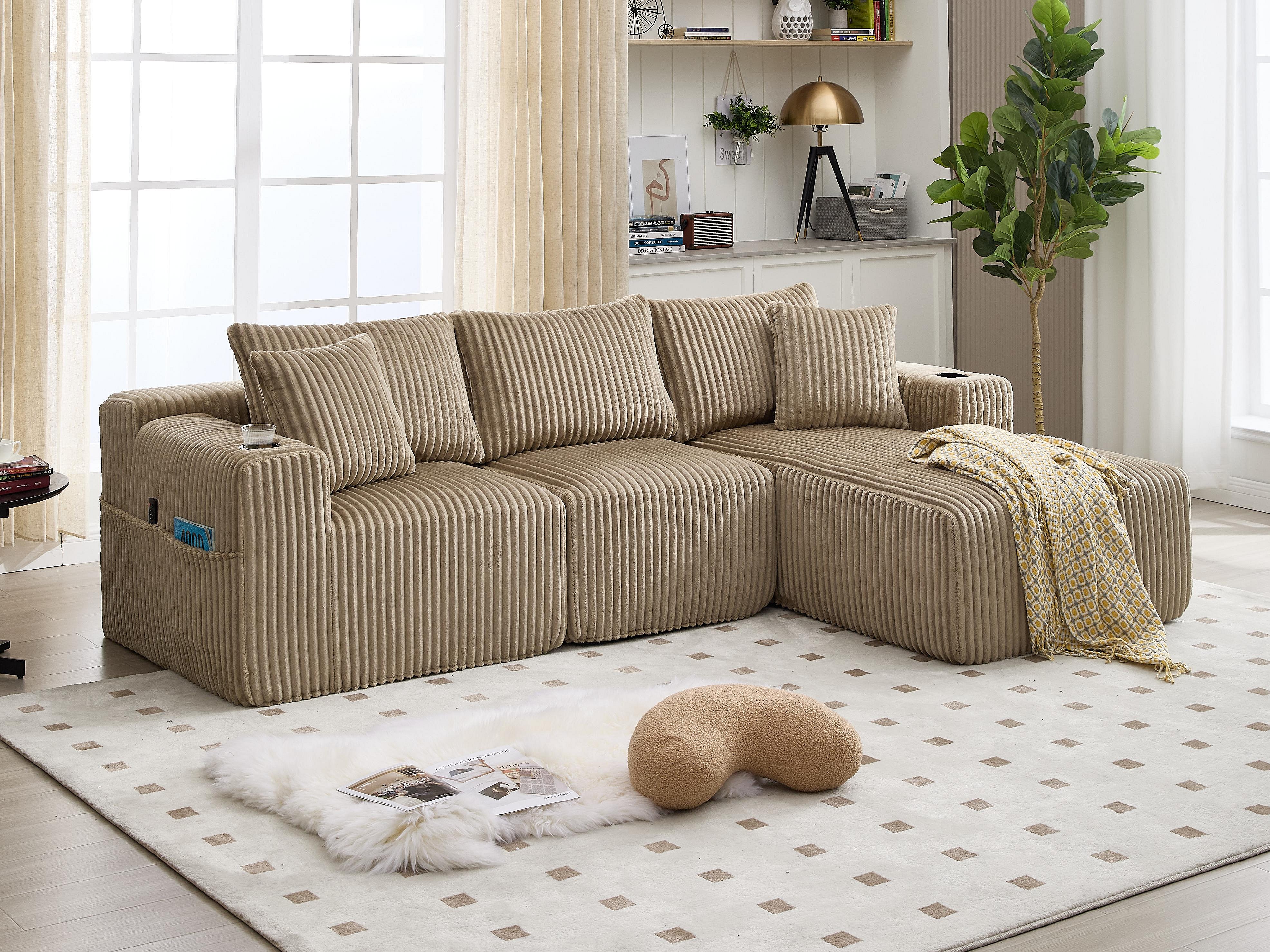 3-zits modulaire bank - Inclusief 5 kussens - Bekerhouders en zijvakken - Omvormbaar tot hoekbank - Ideaal voor woonkamer en studio