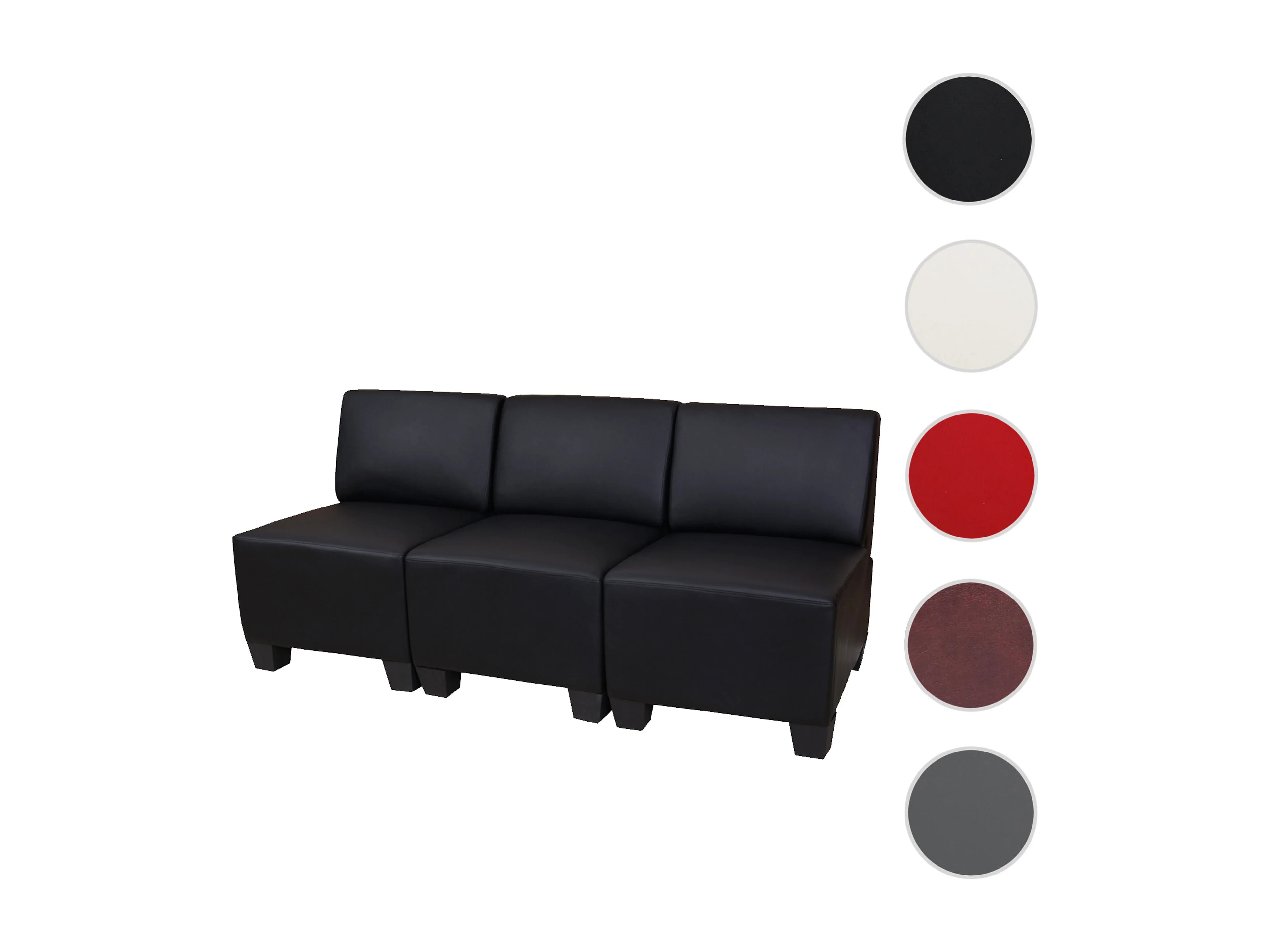 3-zits Moncalieri, zwart, zonder armleuningen