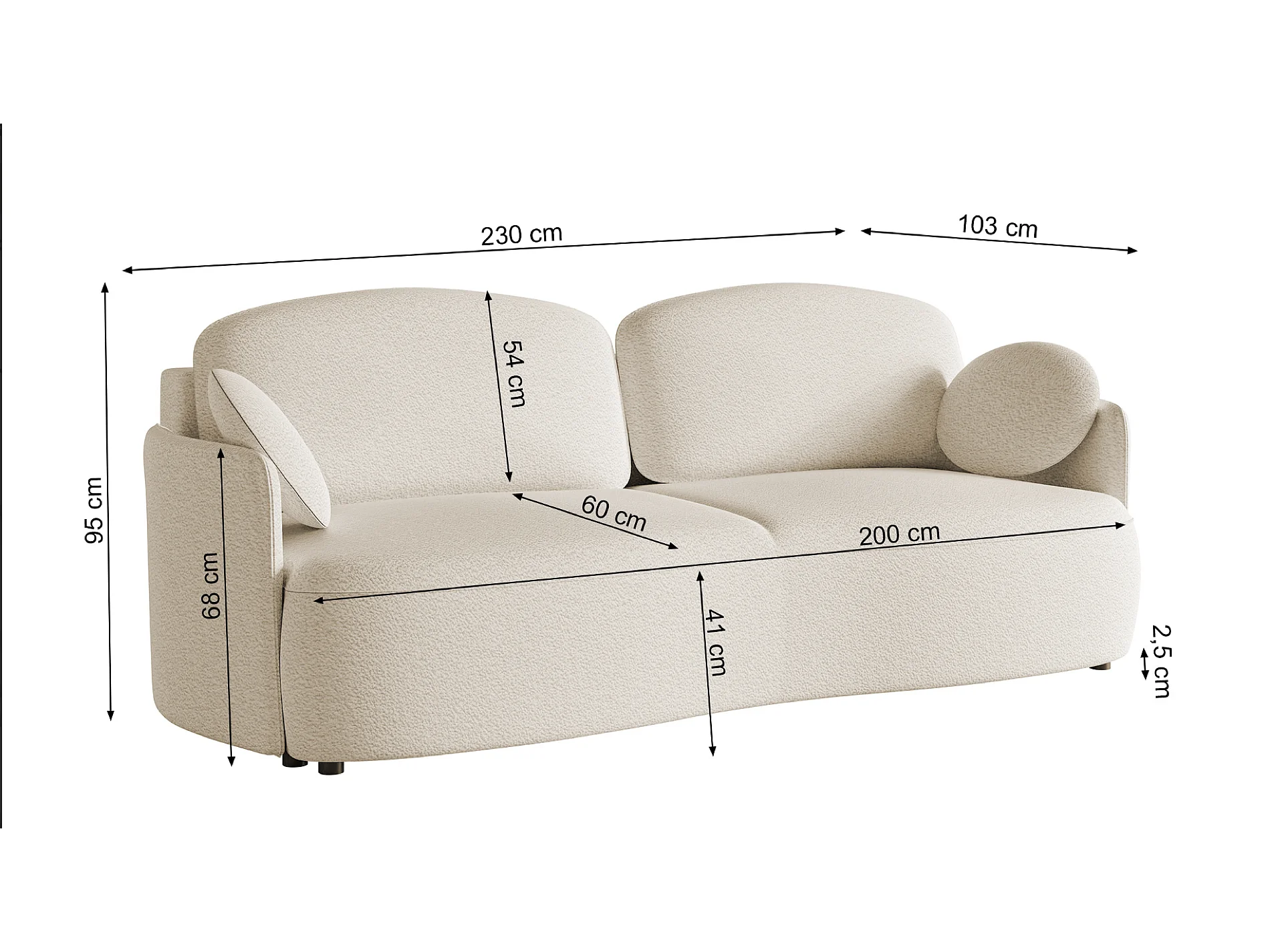 3-zits slaapbank - in crème bouclé - RAVIOLO