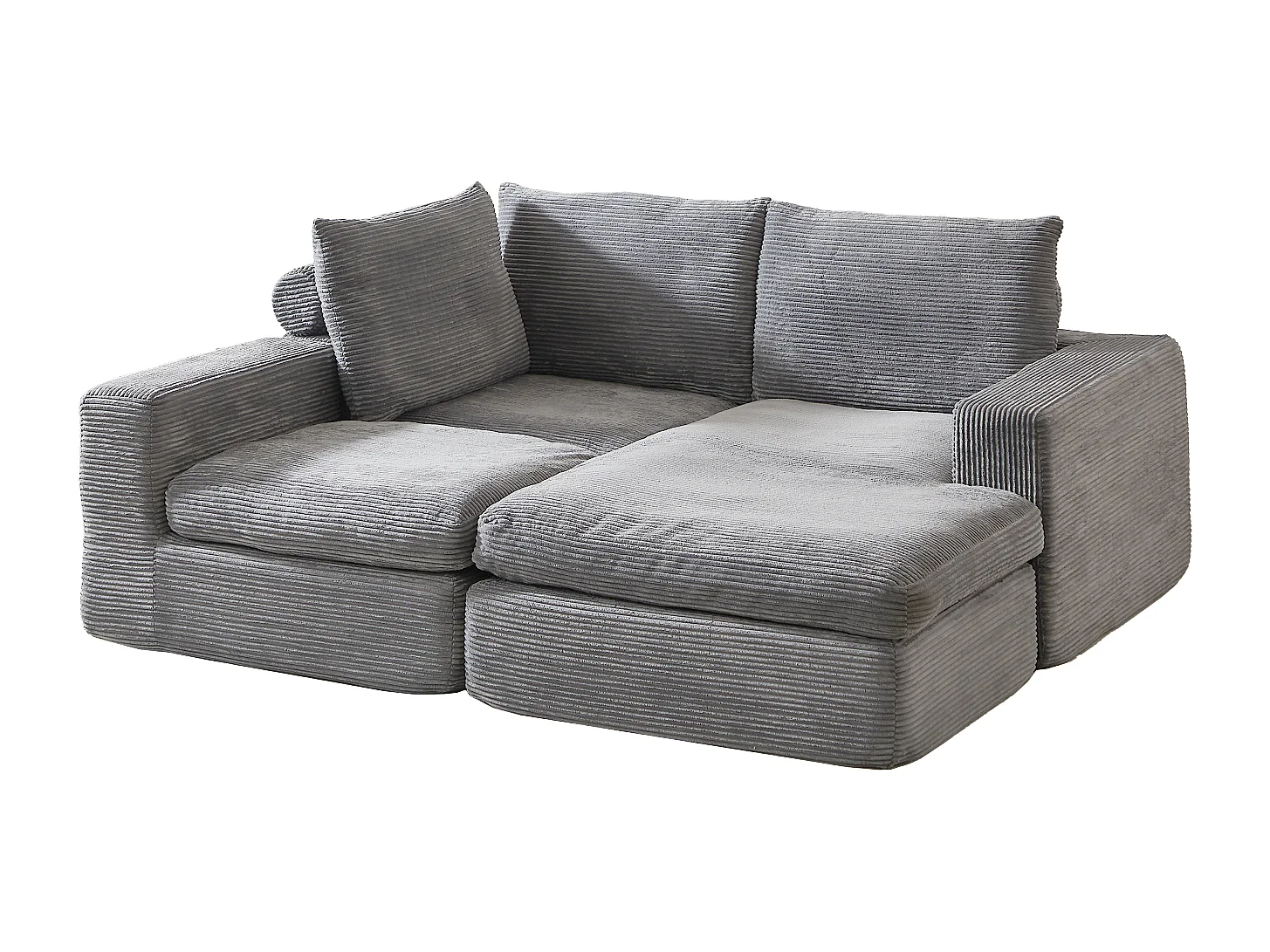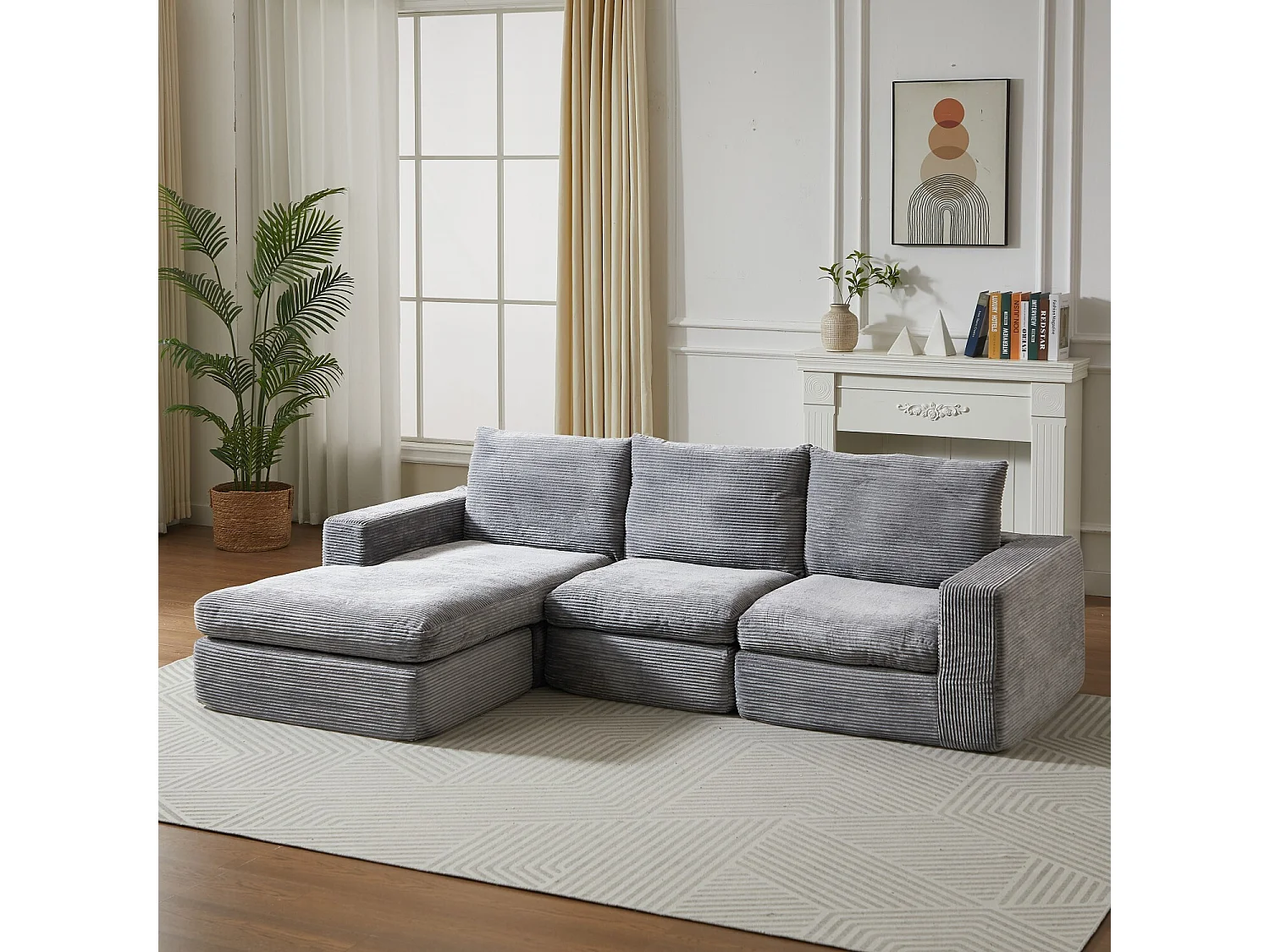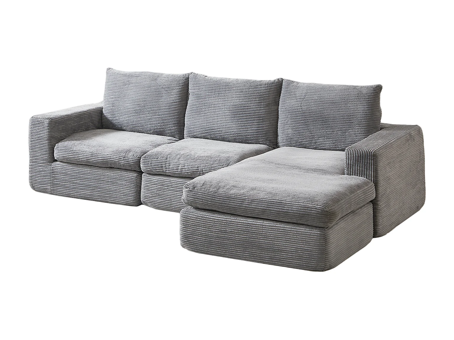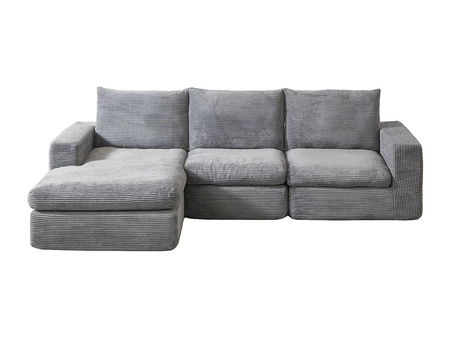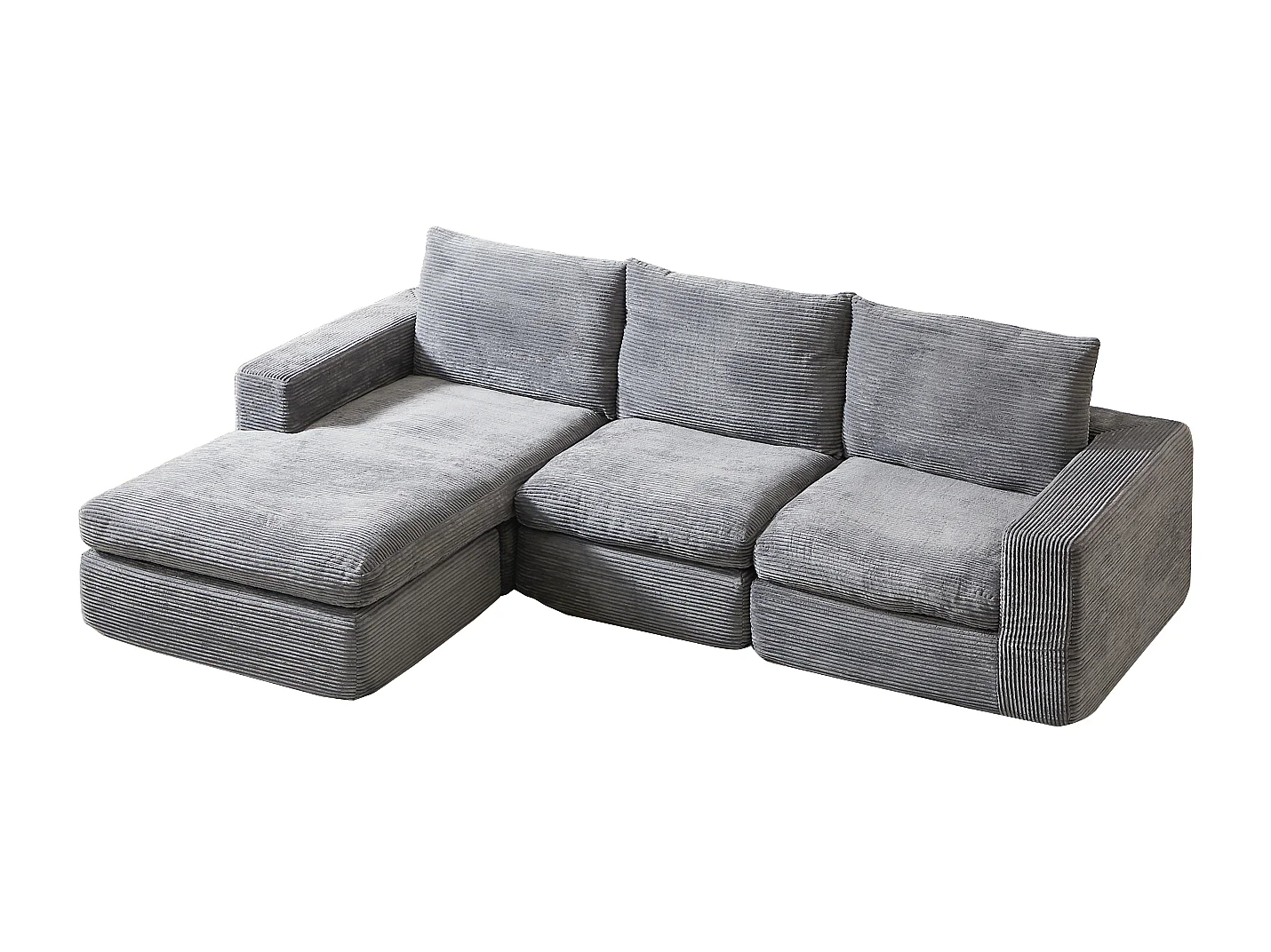 3-zitsbank, hoekbank met gewatteerde rugleuning en armleuningen - Lichtgrijs corduroy