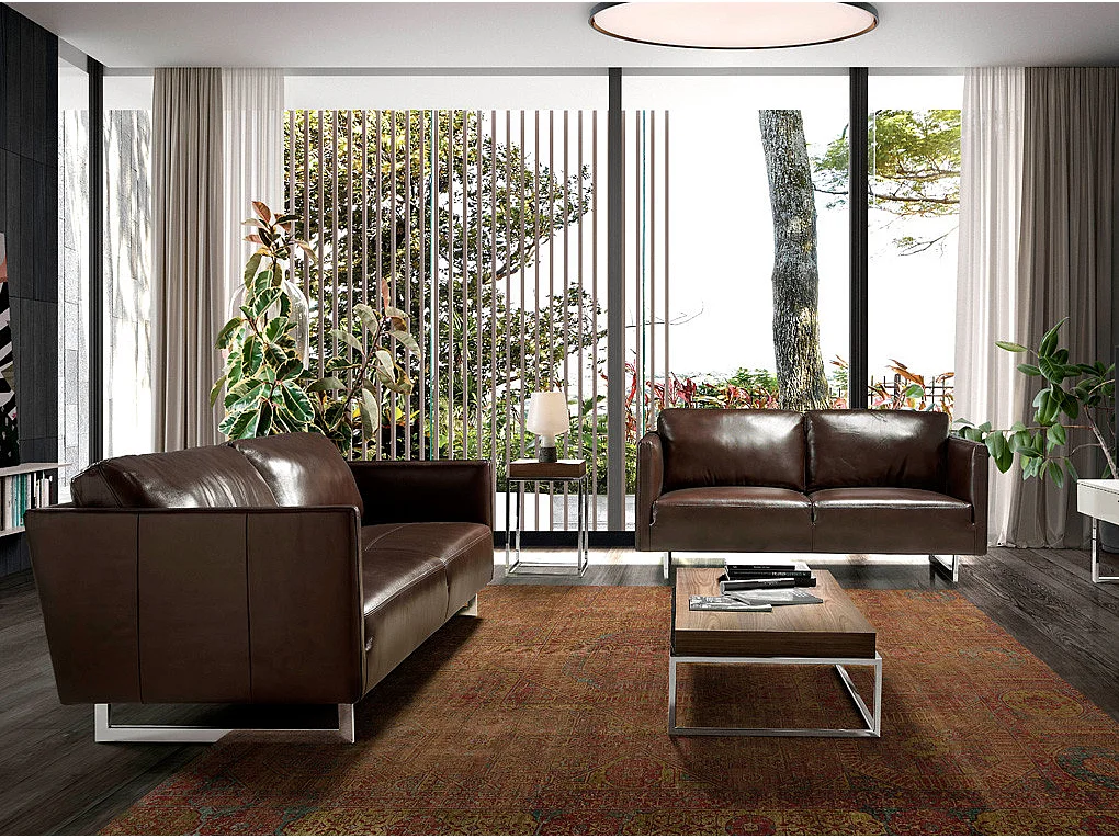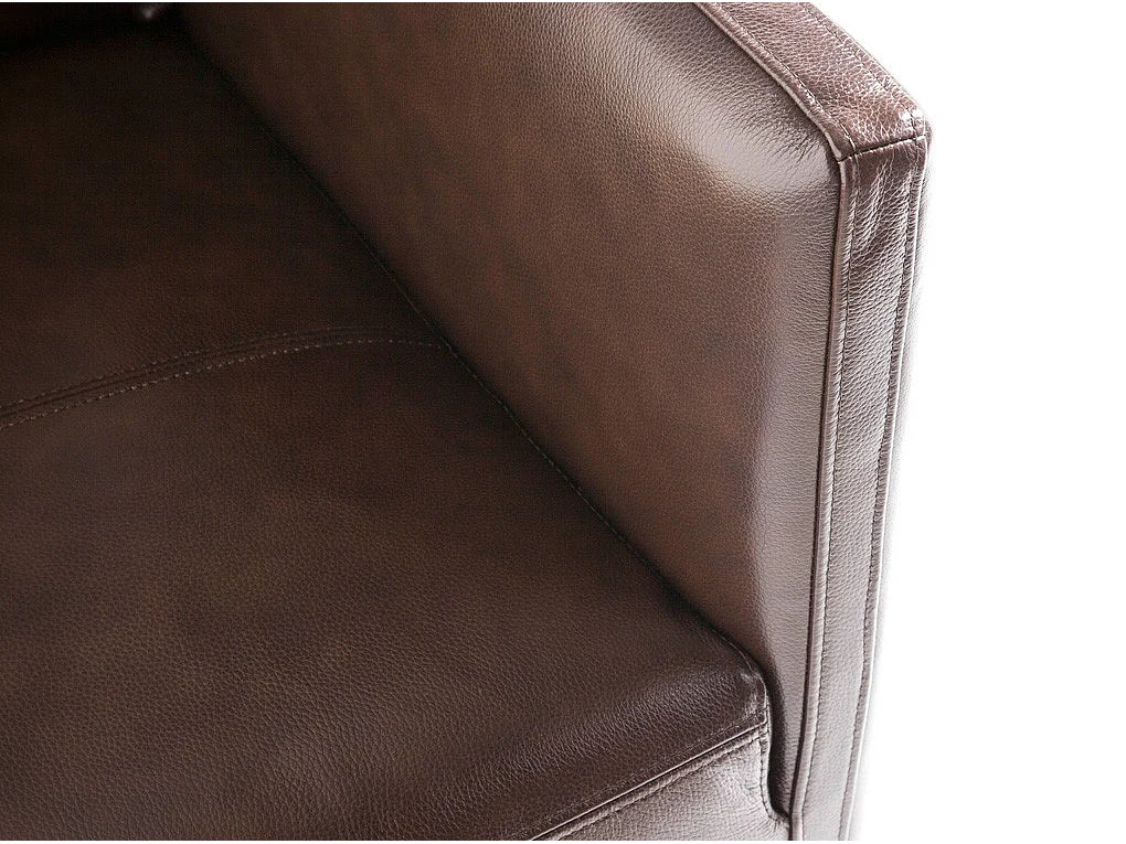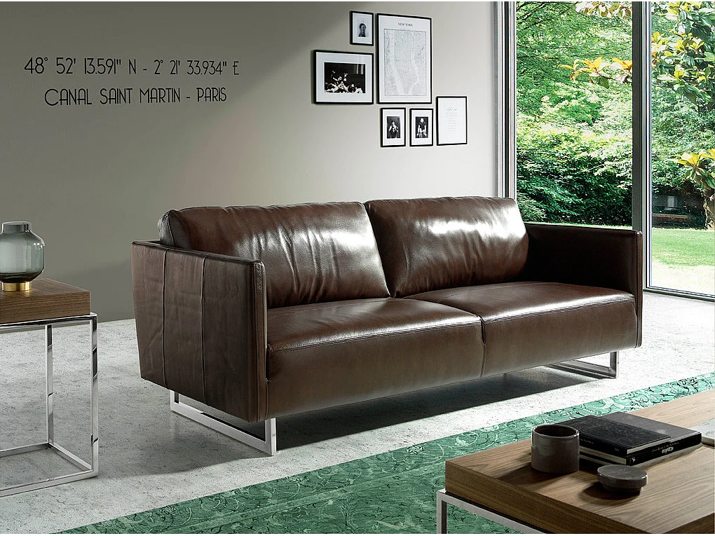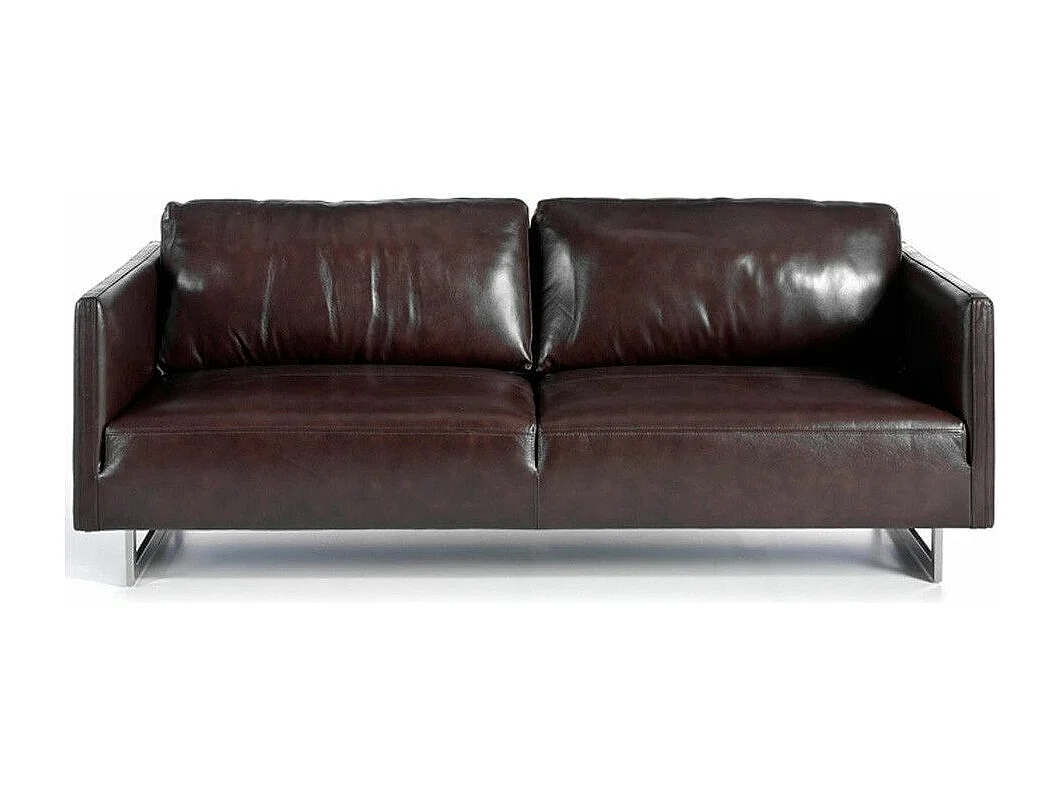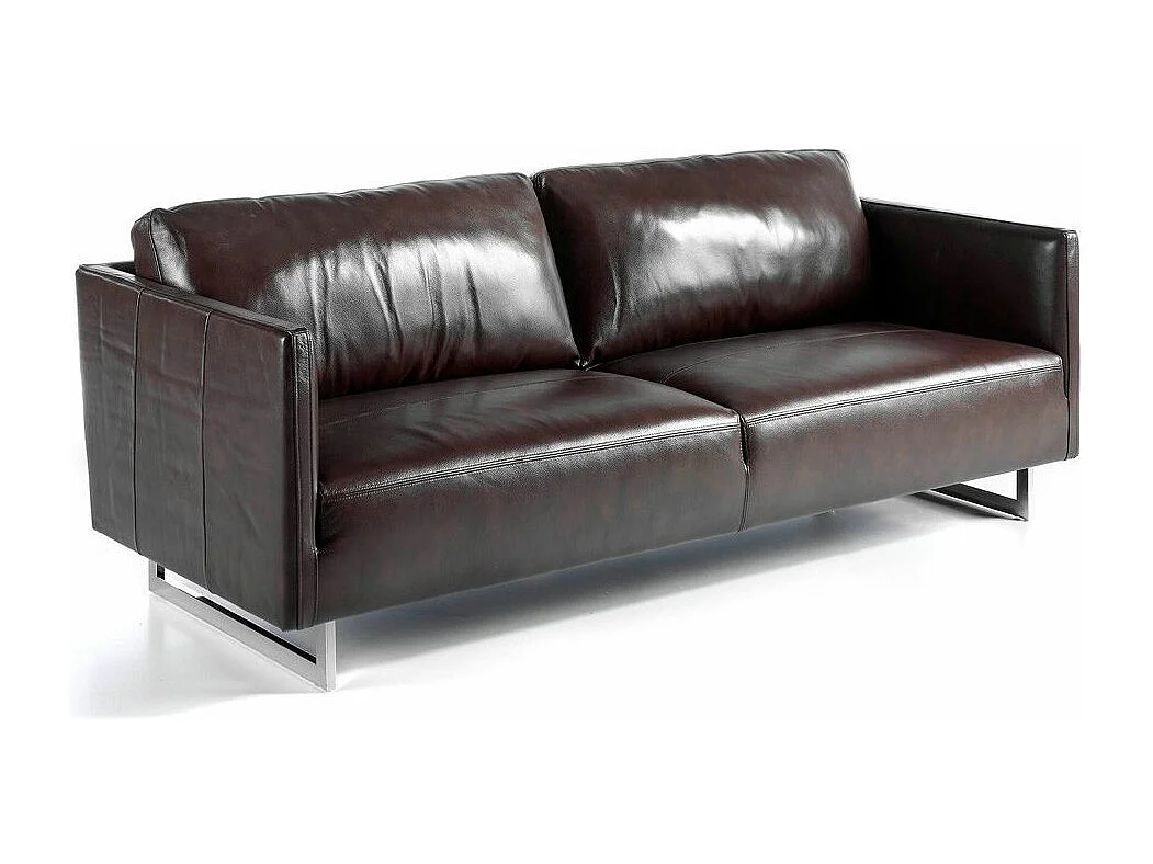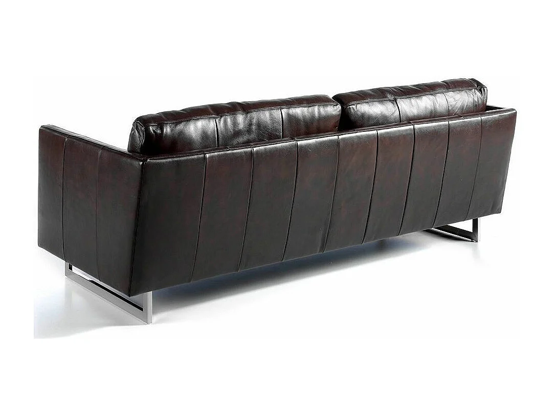 3-zitsbank in rundleer en RVS chroomstalen poten Miro-Kleur Parel leer
