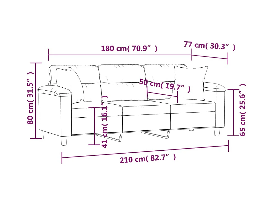 3-zitsbank met beige kussens 180 cm microvezelstof