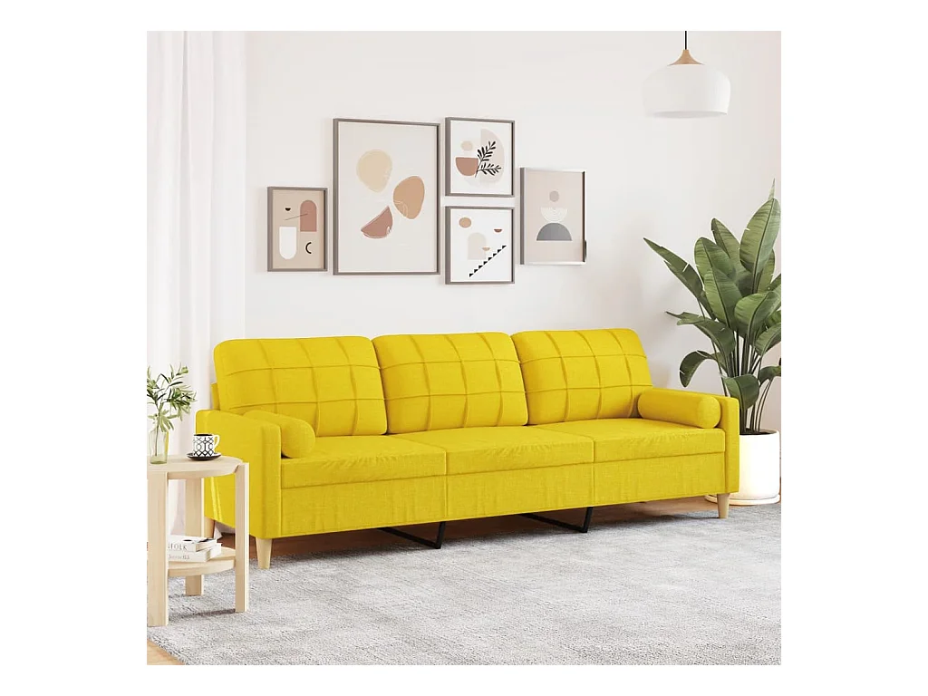 Driezitsbank met sierkussens 180 cm stof lichtgeel