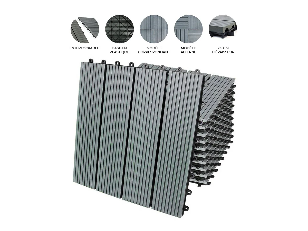 Set van 48 grijze kliktegels van composiet hout