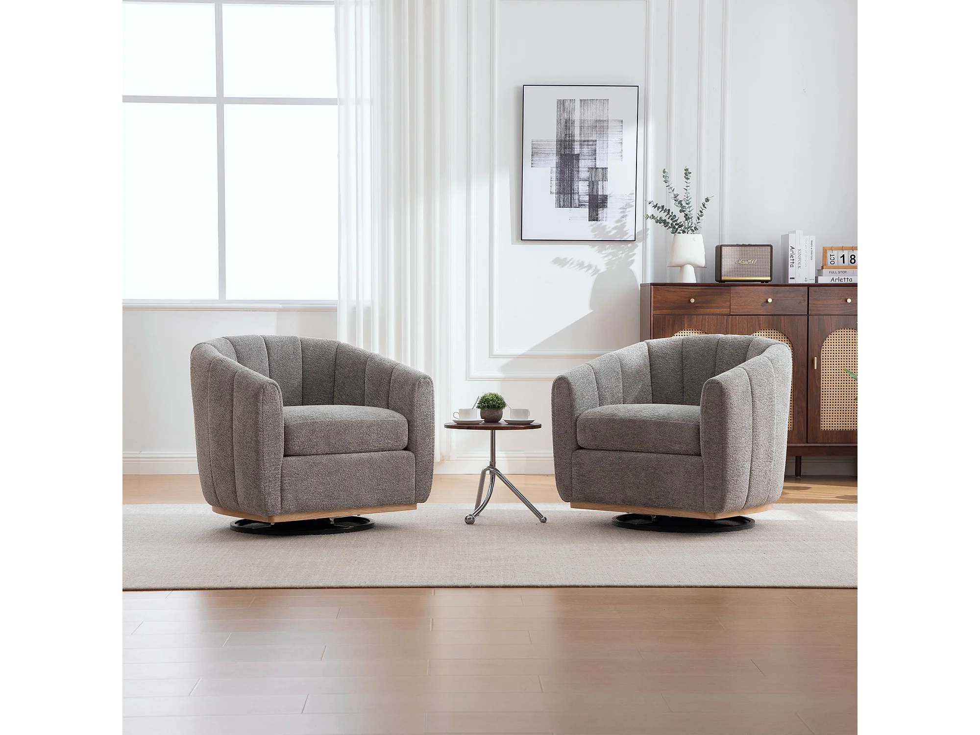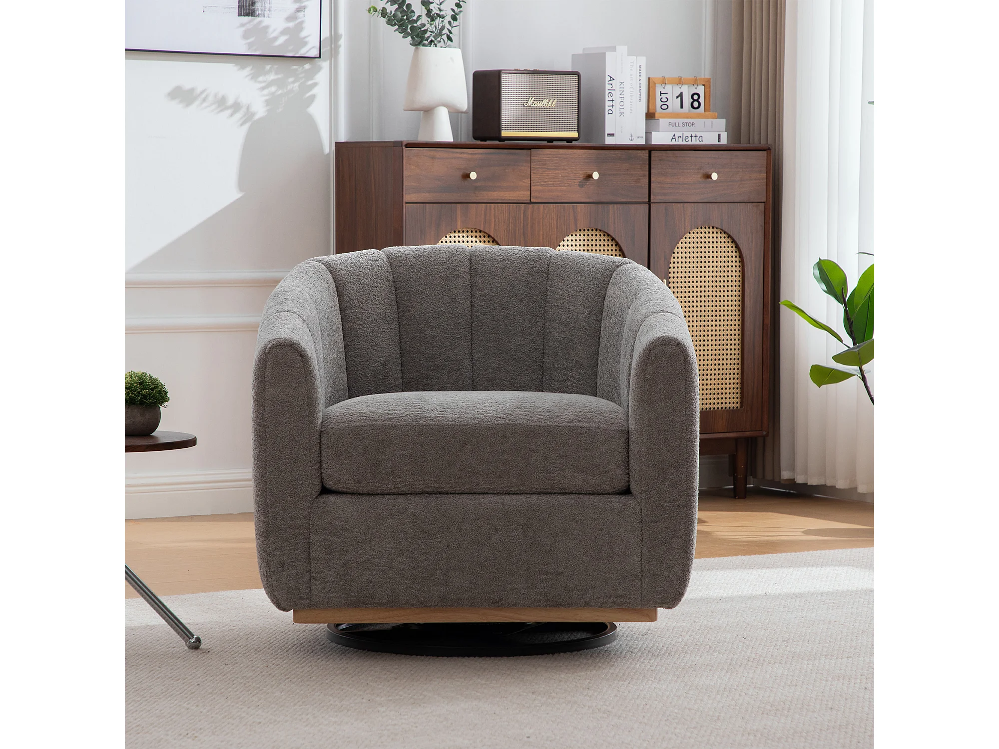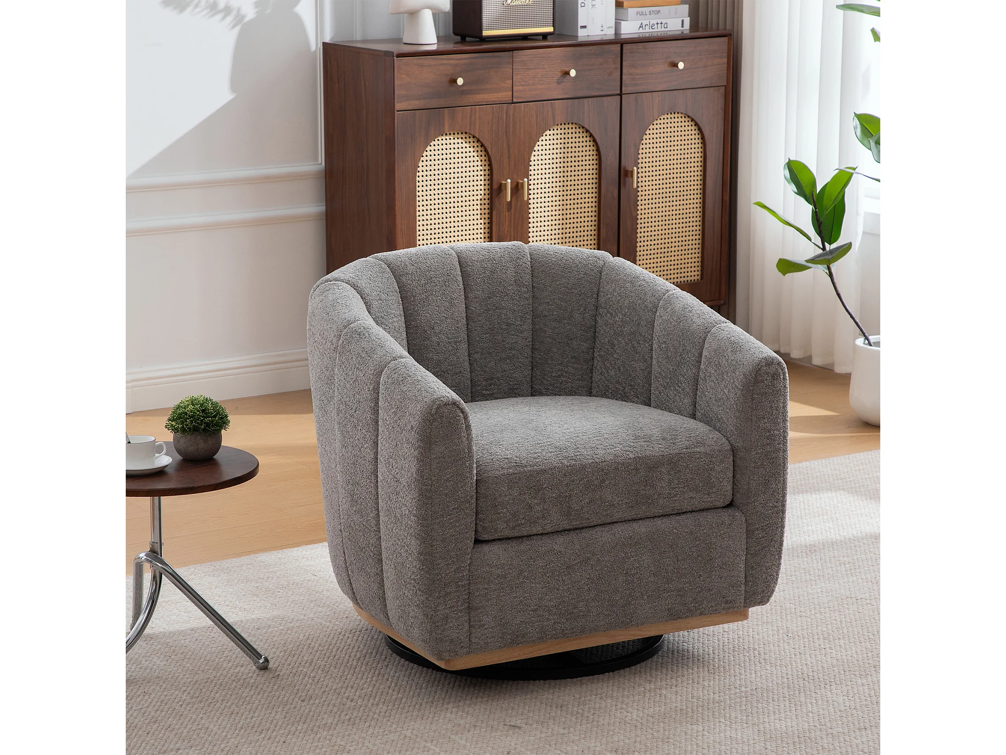 360° draaibare stoel in grijze chenille met metalen onderstel - Pompoenvormig