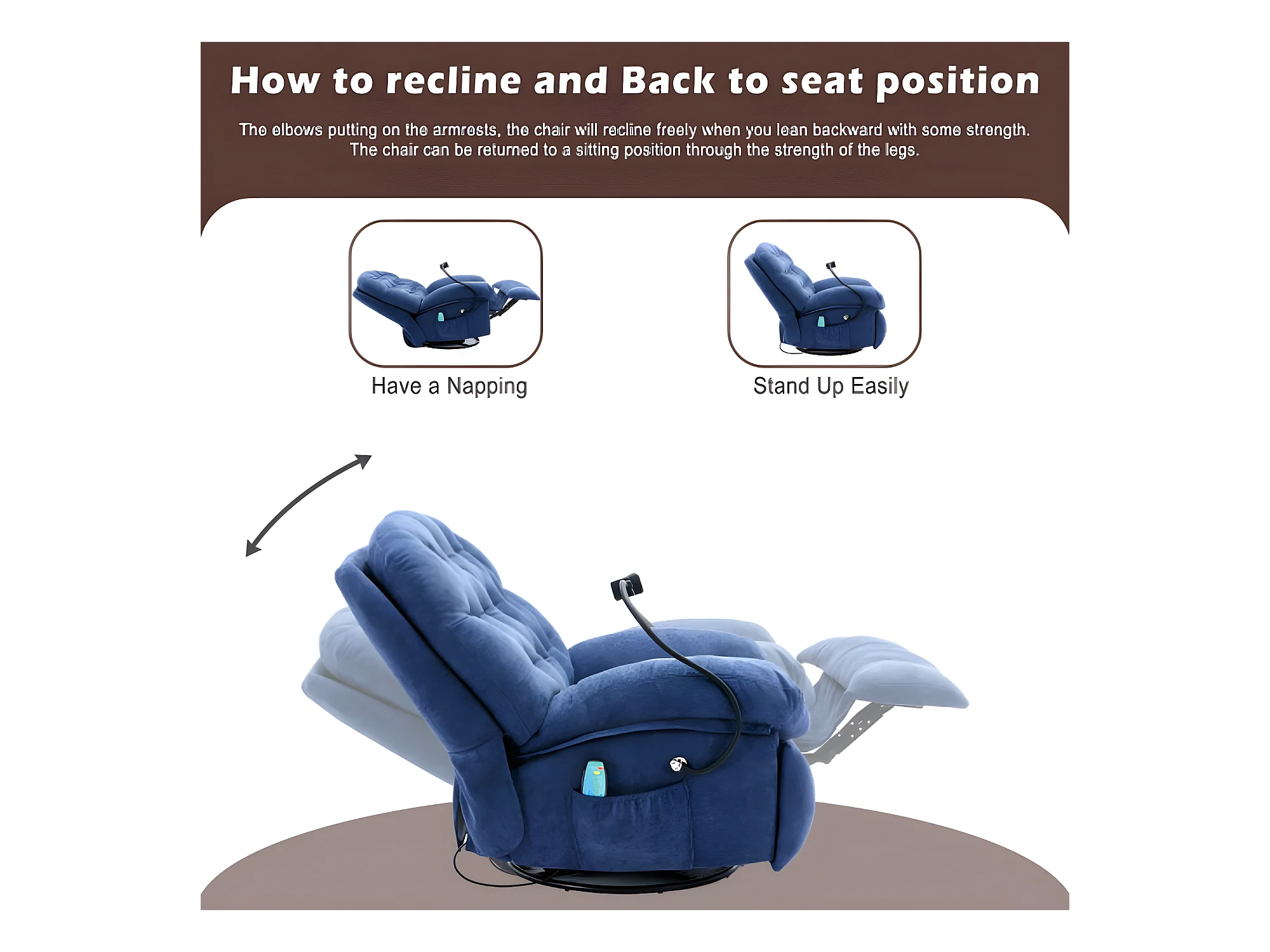 360 graden draaibare massagestoel van stof met verwarmde telefoonhouder