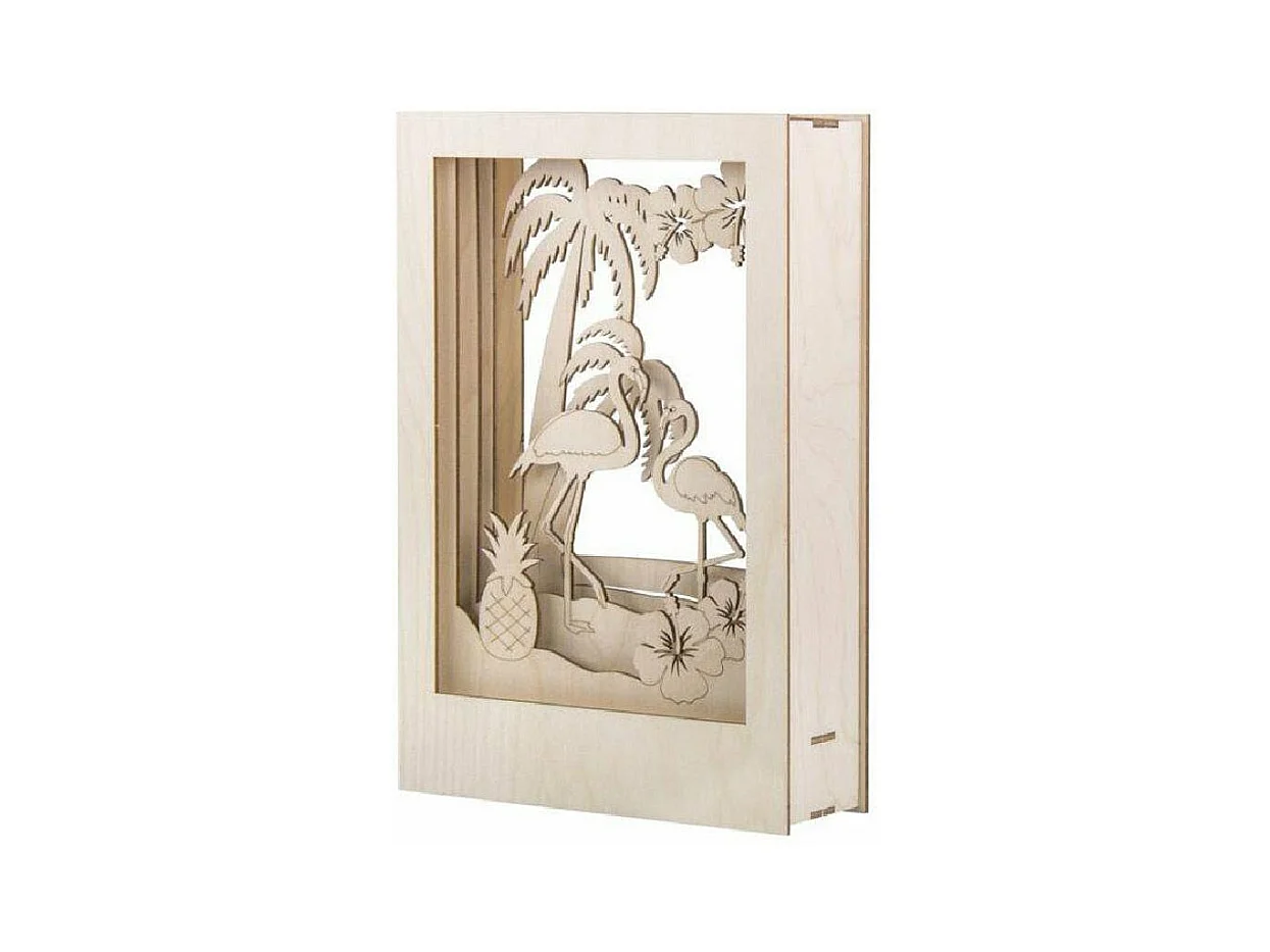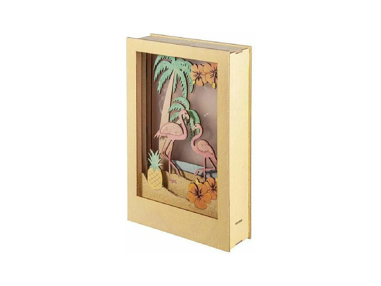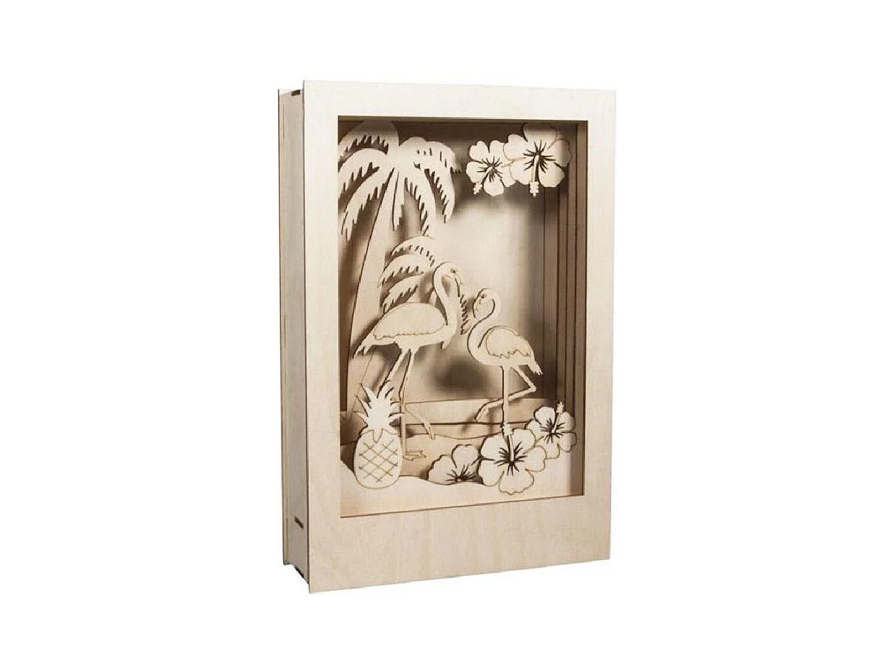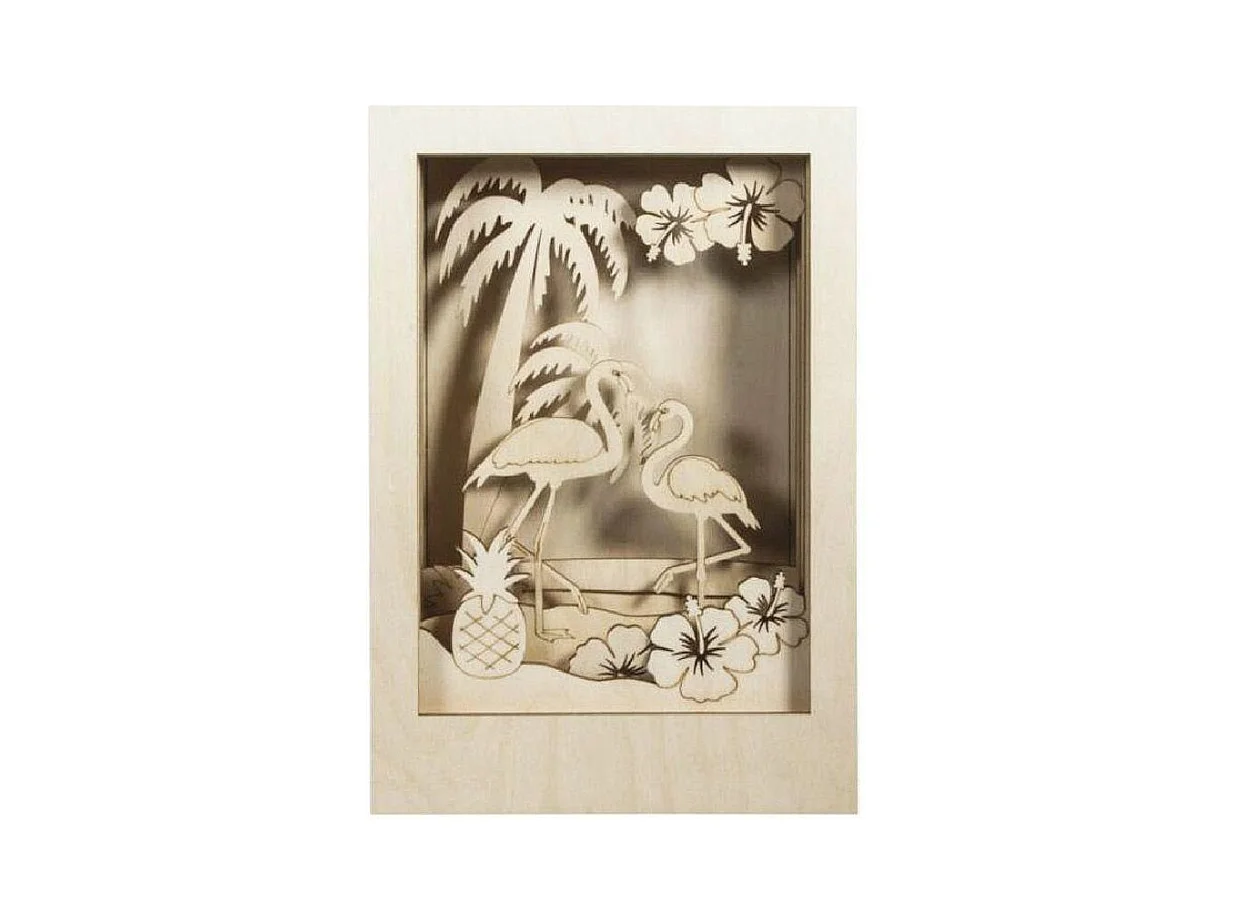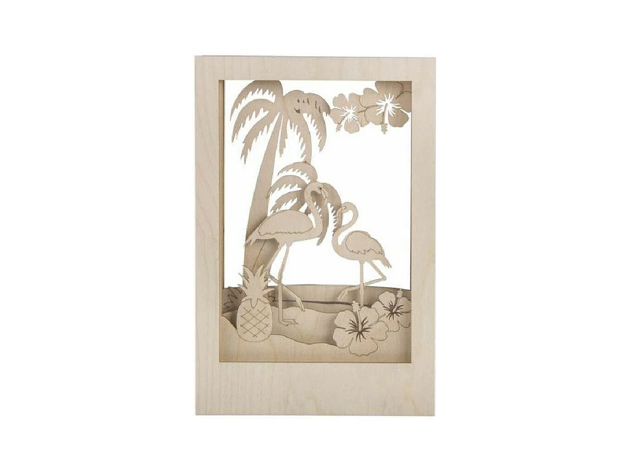 3D-patroon houten decoratief frame - 20 x 30 x 6,7 cm - Flamingo